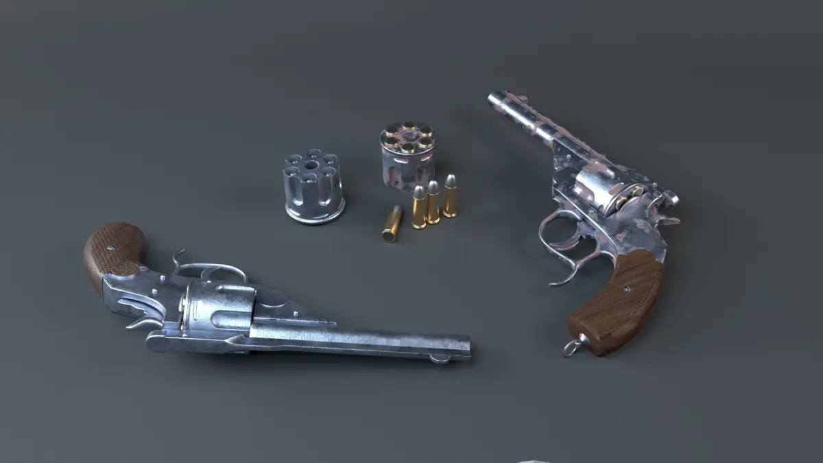 three Vray mtl material - revolver clean 4096 p, revolver rusted 4096 p and bullet 1024 p.