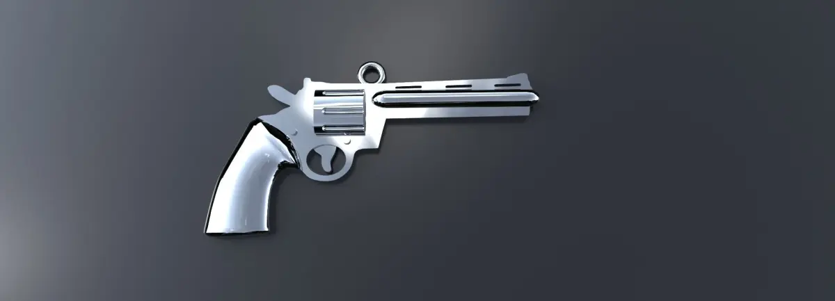 Revolver pendant model up for sale. Non functional, only for jewelry purposes. Meets all jewelry manufacturing specifications. All other dimensions are in the last two pictures.