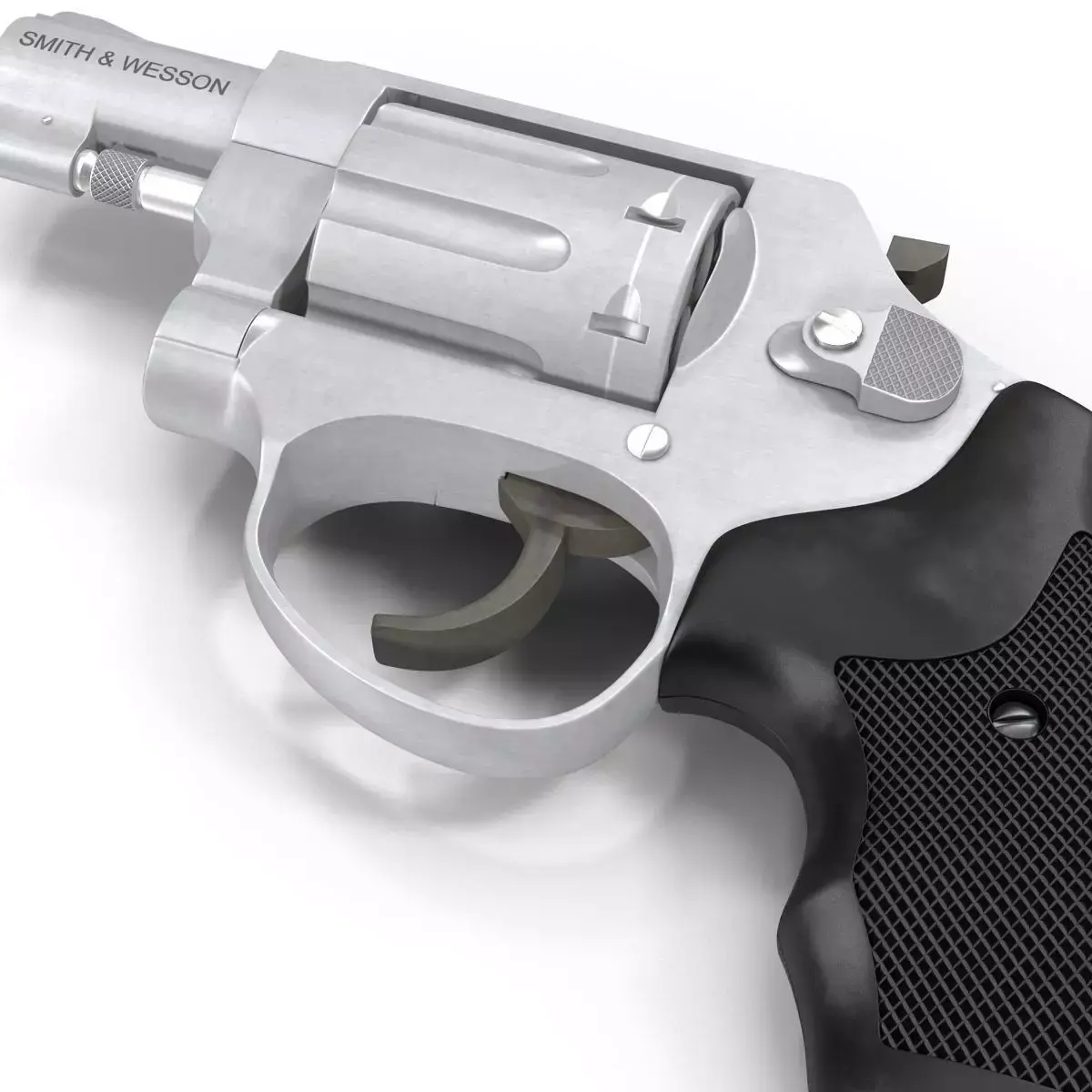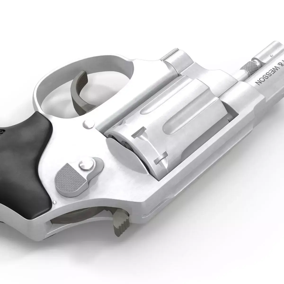 Revolver Smith and Wesson is a three-dimensional model of a compact double-action revolver, representing a classic short-barrel handgun design commonly used for personal defense and law enforcement applications.