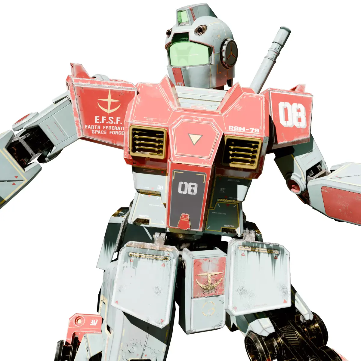 Elevate your project with this highly detailed and professionally textured RGM-79 GM model. Available now on CGTrader, it is a powerful asset for anyone looking to bring a legendary mobile suit to life with exceptional clarity and authenticity.