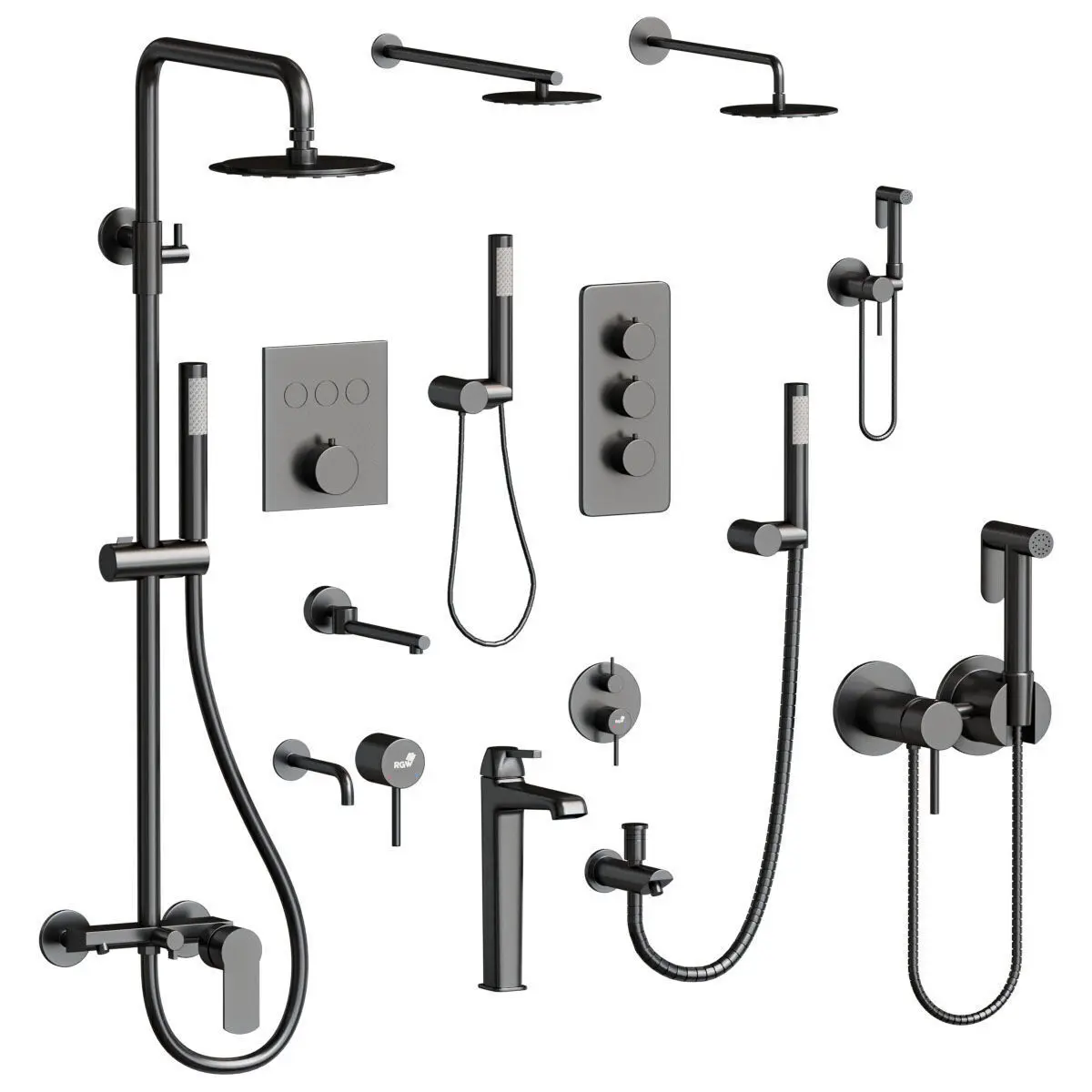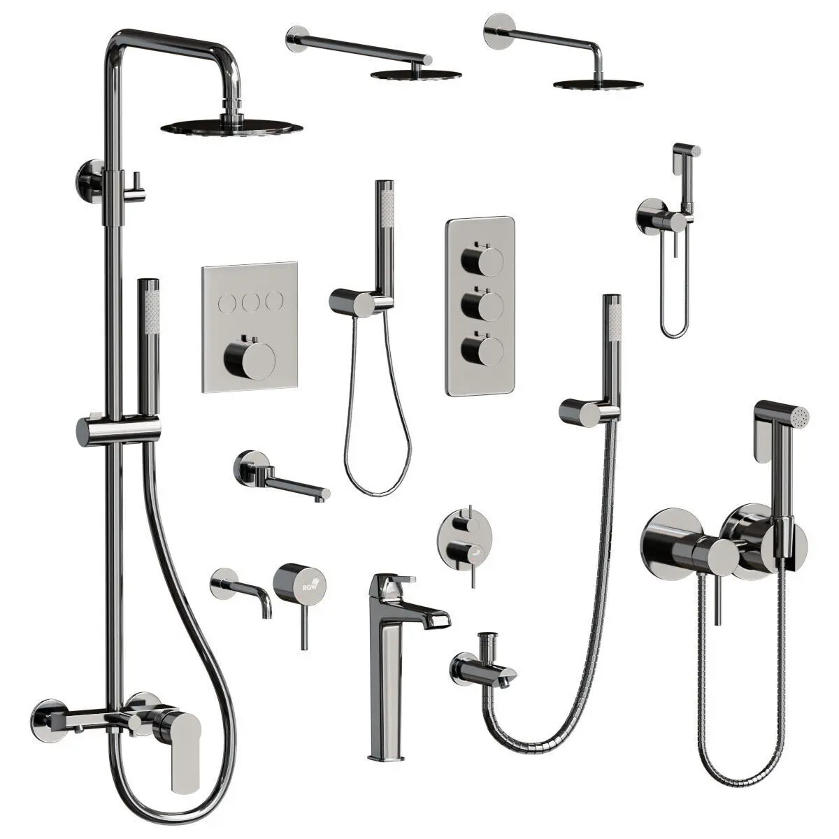 Name: RGW Shower Fauset SetFormat: 3Ds Max 2017Export: OBJRender: Corona (9) Vray (4.x)Polys: 1304242Verts: 659991Modern popular design For the ideal interior combination, the products are made in a minimalist, geometric design. The surface of all parts has undergone a multi-layer galvanic process and acquired high reliability and a mirror shine.Durability and reliability The mixer body and hand shower are made of high-strength brass with a high copper content (70%), which provides increased resistance to corrosion, sudden changes in pressure and temperature, and also increases the service life to 10 Comfort and convenience An additional smooth button on the hand shower will allow you to control the water pressure for comfortable use, and due to the length of the 120 cm steel hose, the user will have the necessary space to maneuver.Compact placement Just one mounting hole – fits perfectly into a small bathroom. The built-in sanitary device is mounted directly inside the wall, which allows you to completely hide the functional element, as well as hide installation flaws.In addition to the instructions and warranty card, the kit includes everything you need to make installation simple and quick. Kit includes: Mixer. Hand shower. Steel hose 120 cm. Hand shower holder. Cover for the mounting hole. Installation kit.
