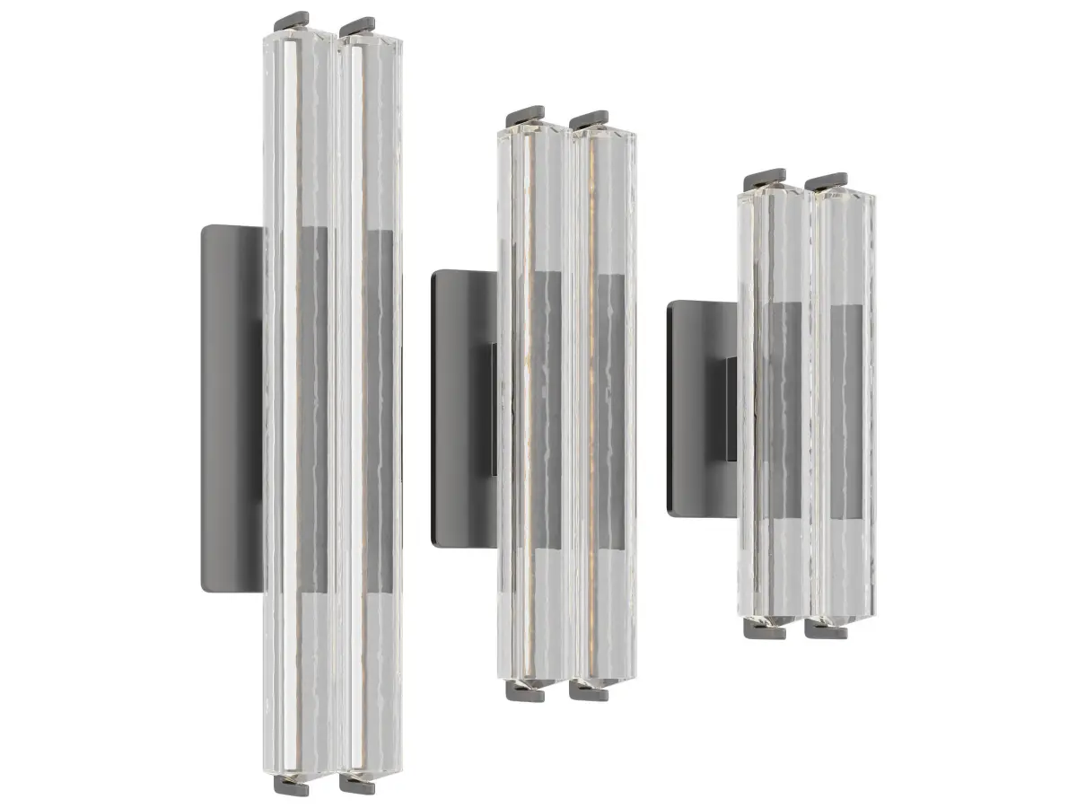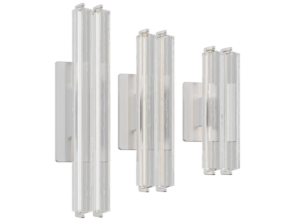 Capturing the spirit of 1960s Italian minimalism, Audubon features two prisms of hand-polished K9 crystal on a solid brass frame. At once striking and restrained, the collection by Joseph Jeup evokes the warmth of candlelight with elongated LEDs that shed beautiful light through the undulating texture of the glass.