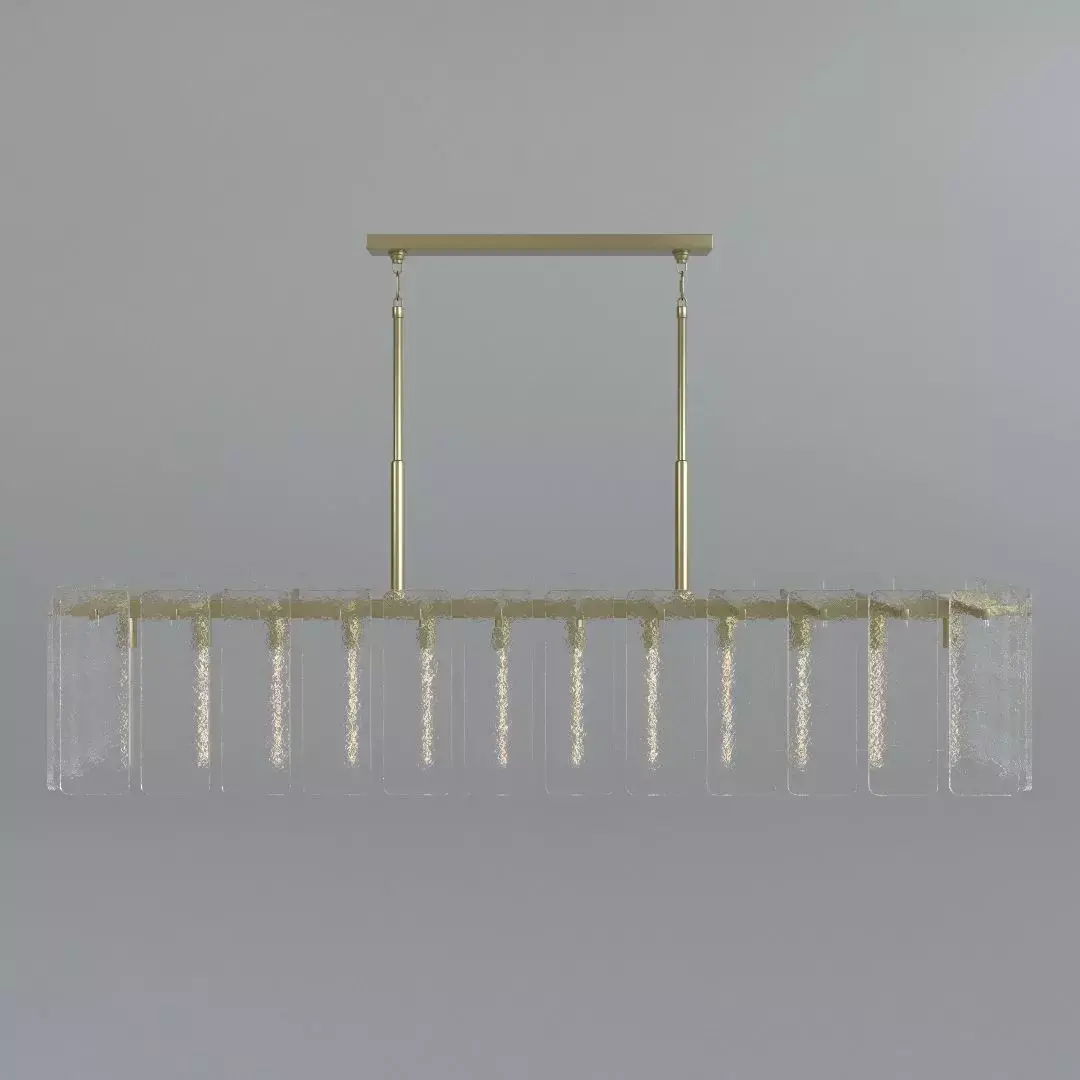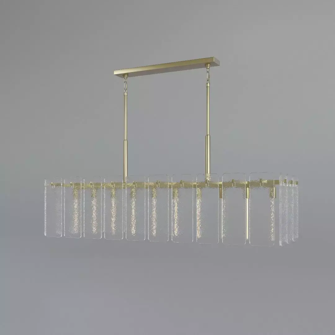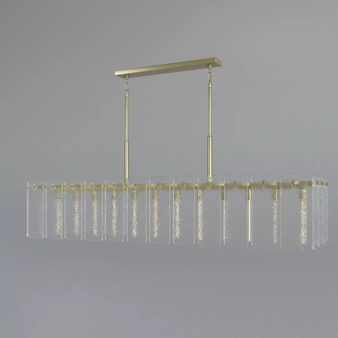 Frame crafted of steelShades are made of glass panels with radius cornersGlass is cast in a custom mold to create its distinctive rippled texture100W max. E26-base LED bulbsBulbs includedColor temperature 2700K; CRI 100Dimmer switch compatibleCan be mounted on a vaulted ceiling110-120V manufactured to US standards for US and Canadian marketsCertified to Dry UL electrical standard: suitable for use indoors in dry locations not directly exposed to excessive moisture and waterChandeliers weighing more than 50 lbs. cannot be mounted alone to a standard outlet box and require additional bracing above the ceiling where they are to be installed.HardwireRequires professional assembly and installation by a licensed electrician. RH delivery service does not include assembly or installation.Wipe with a soft, dry cloth; avoid the use of all cleaners and abrasives, as they will damage the finish