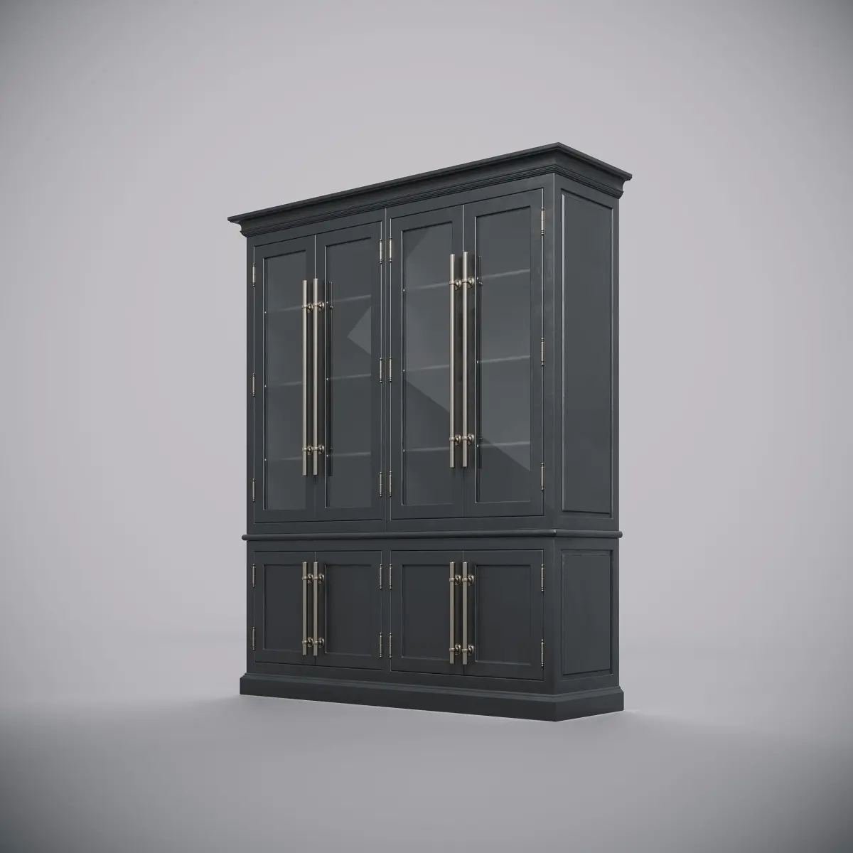 Antiqued Grey Oak and Brown Oak cabinets constructed of solid oakWaxed finish cabinets constructed of solid hardwoodHand applied finishFinish achieved through intensive multistep processPainted interiorTempered glass doorsAntiqued brass bar handle secured with cast metal hardwareAnti-tip kit hardware and installation instructions included. Please note RH white glove delivery service does not include tip restraint installation. We strongly recommend professional installation of the included tip restraint in order to securely anchor the product to the wall, preventing risk of damage or serious injury.Wipe with a soft, dry cloth; avoid the use of harsh chemicals or abrasive cleaning materials