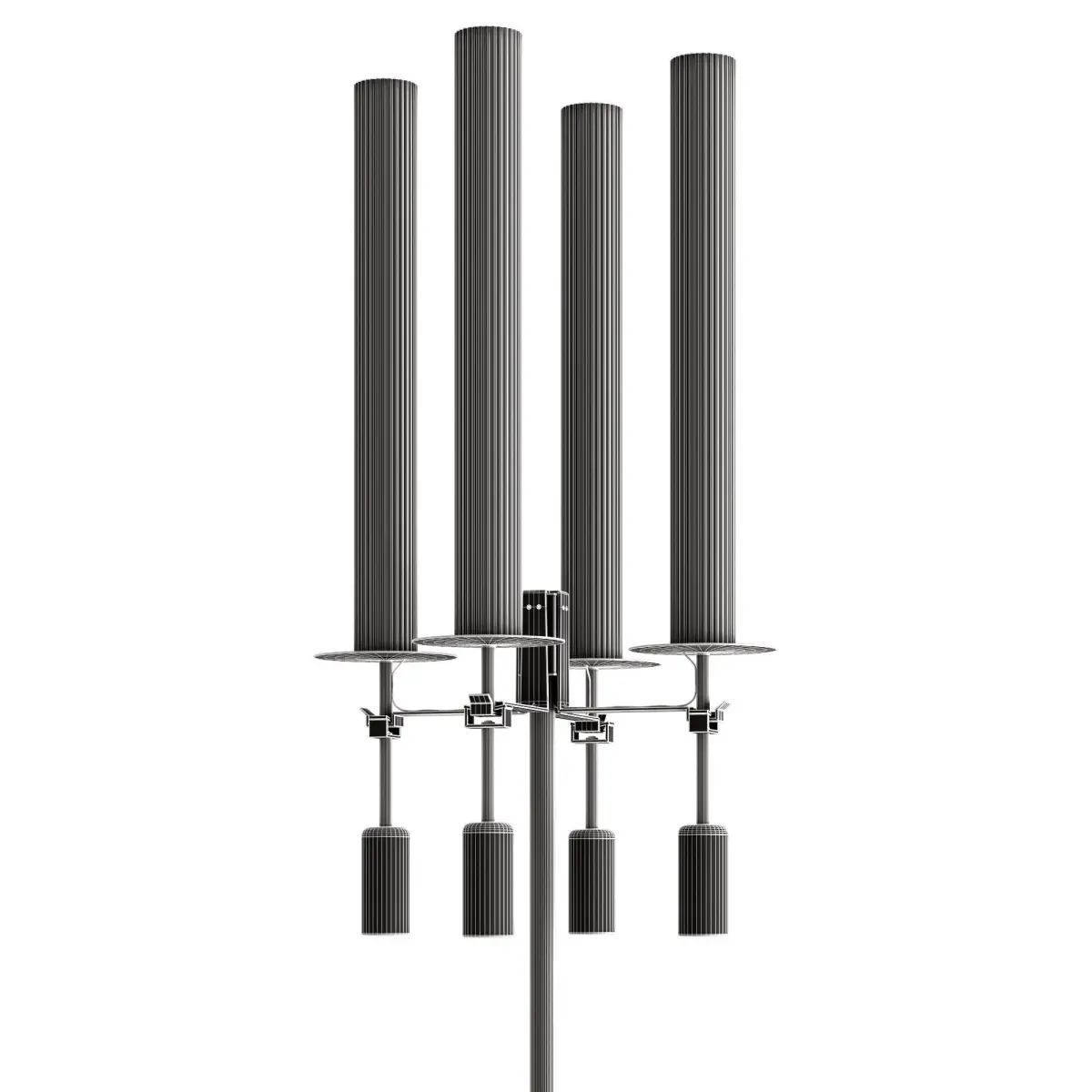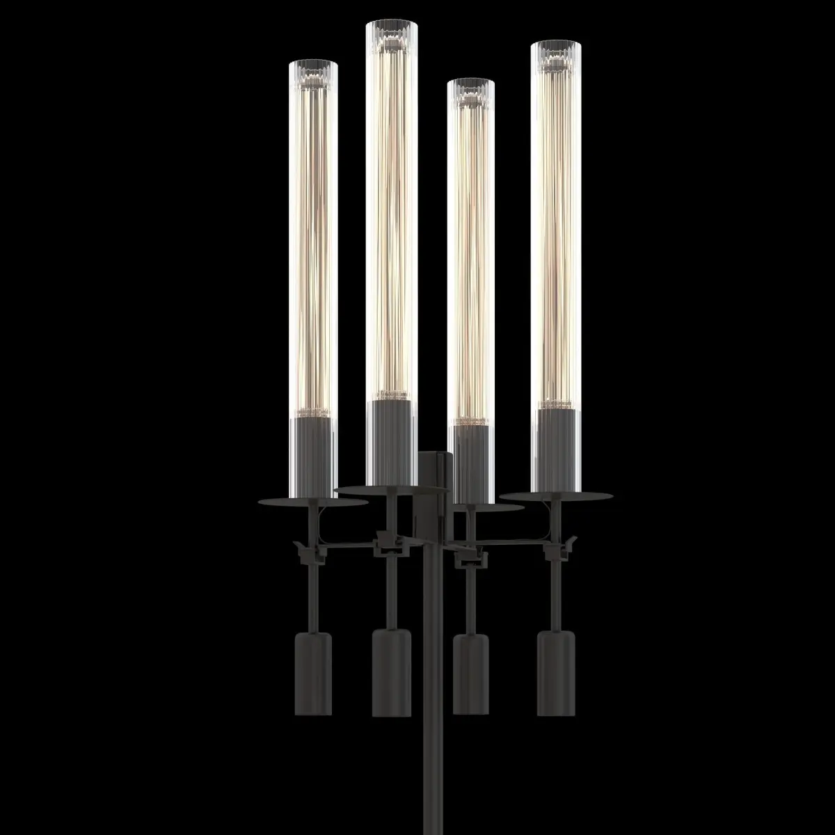 Created by renowned lighting designer Jonathan Browning, our fixture evokes 1940s French classicism. Crafted of solid brass, its minimalist architecture features Edison bulbs set within cylinders of ribbed glass, shimmering like candles.