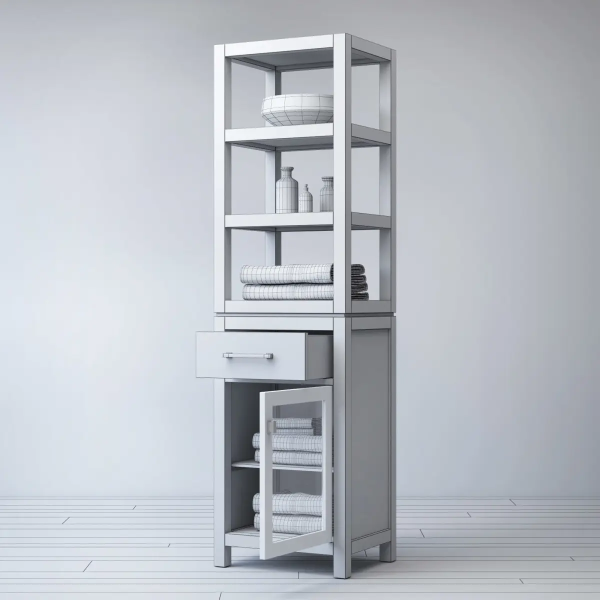 Hutton open shelf bath cabinetArchives included: materials (mat),3DS, FBX, OBJ, 2012 max, 2014 max scene.Model was created in 3ds Max 2014.Shader for V-Ray 3.20.02
