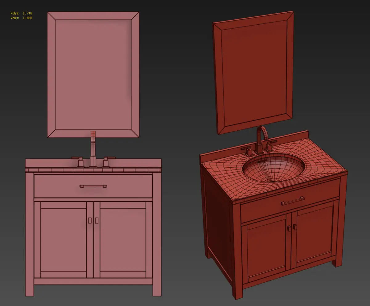 HUTTON SINGLE VANITYArchives included: textures, materials (vray),3DS, FBX, OBJ, 2011 max, 2014 max scene.Model was created in 3ds Max 2014.Shader for V-Ray 3.30.05Dimensions:•36W x 24D x 34"H•91cmW x 61cmD x 86cmH