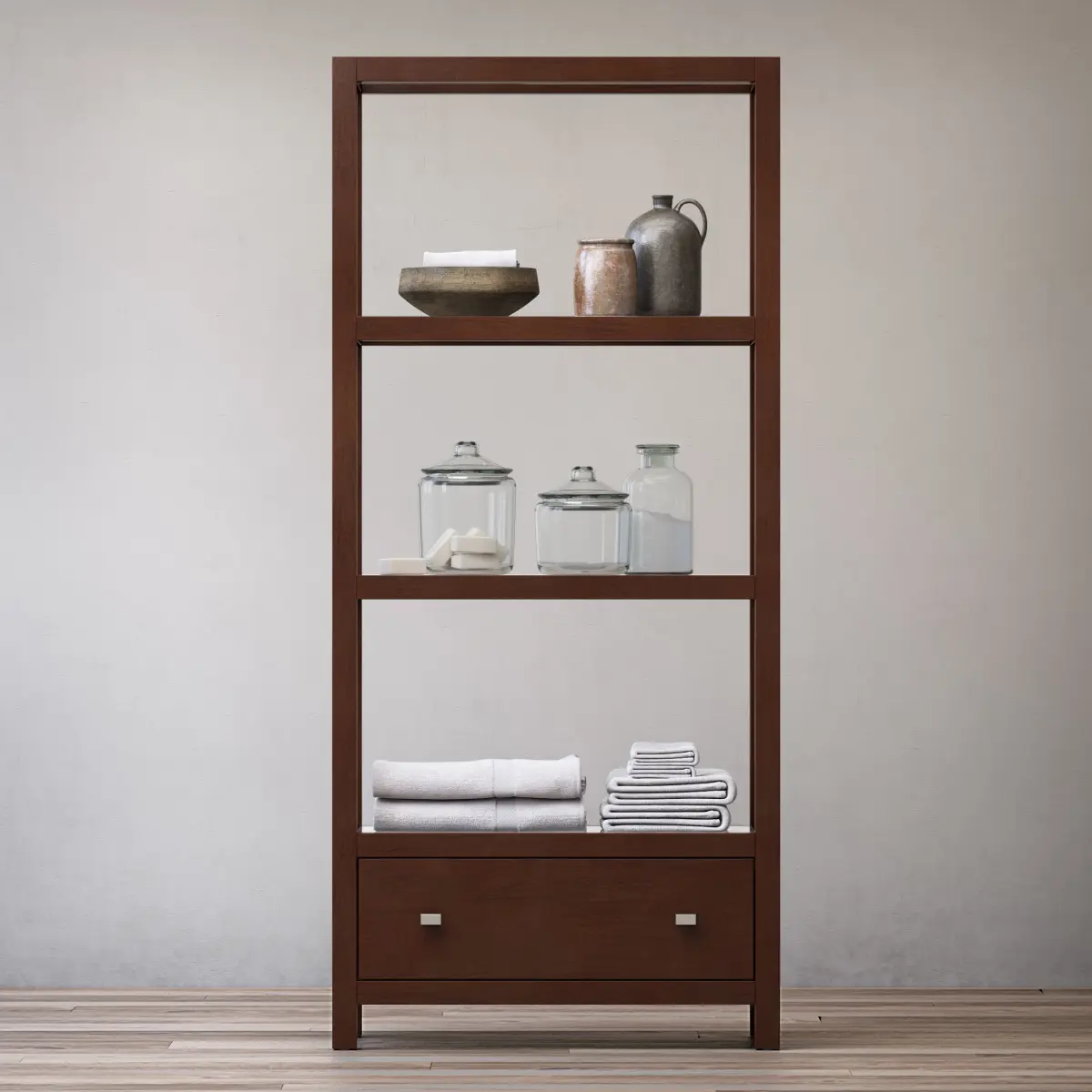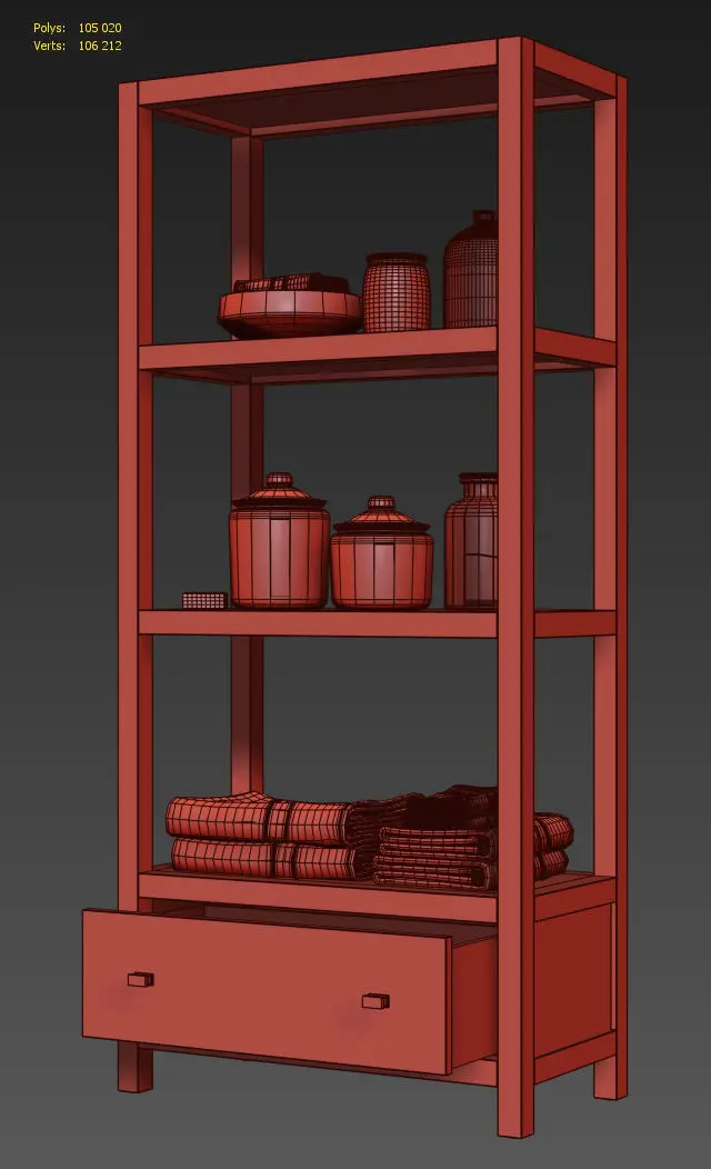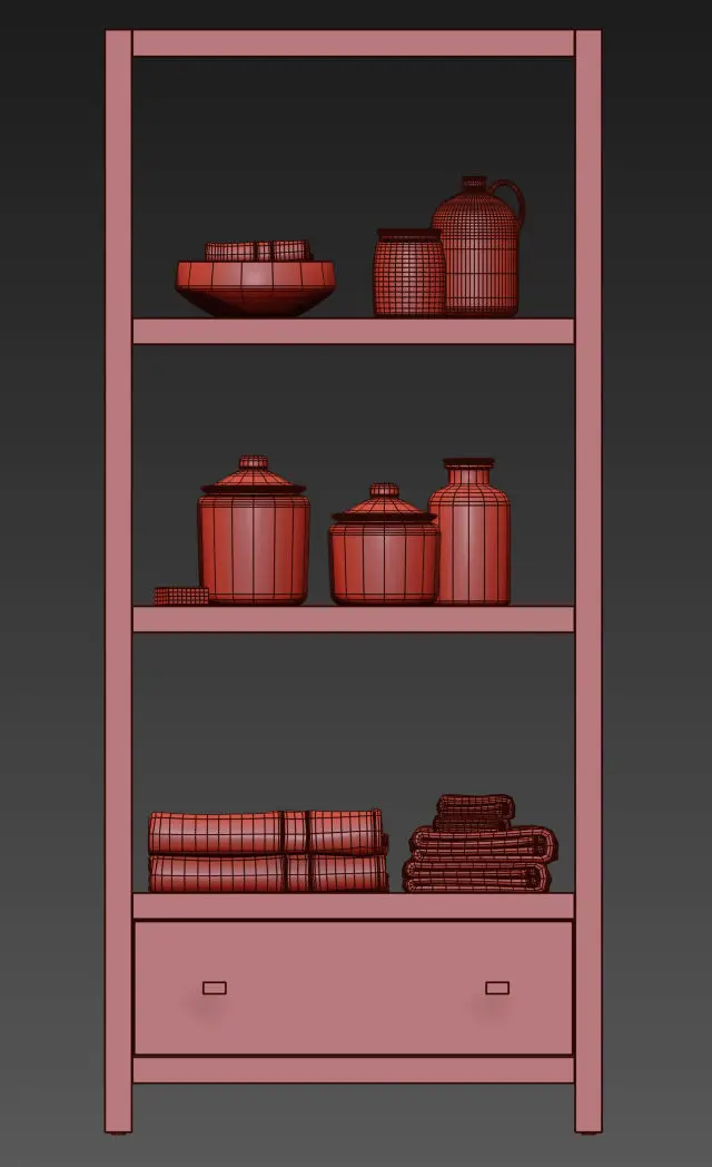 HUTTON TALL ETAGEREArchives included: textures, materials (vray),3DS, FBX, OBJ, 2011 max, 2014 max scene.Model was created in 3ds Max 2014.Shader for V-Ray 3.30.05Dimensions:•32W x 16D x 71"H•81cmW x 41cmD x 130cmH