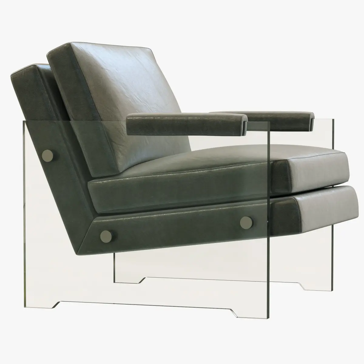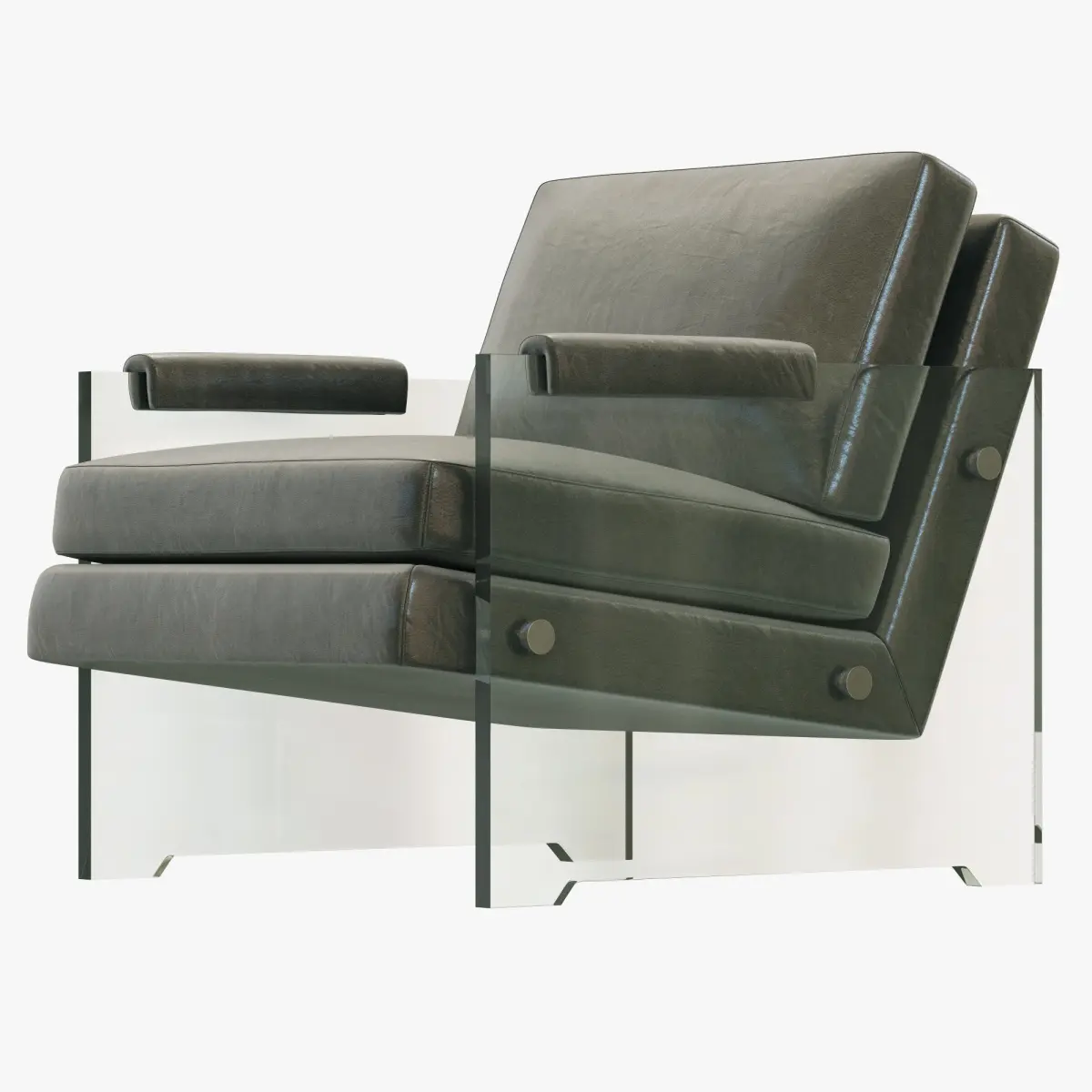 Embracing innovation and experimentation, designers of the 1970s expressed themselves in unexpected styles and materials. With its clear acrylic panels, large exposed rivets and comfortably upholstered seat, our chair captures the era's aesthetic sensibility.