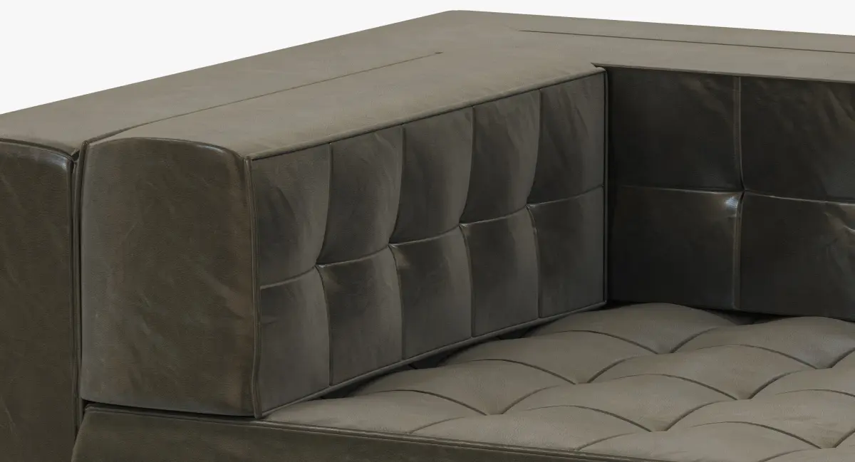Long and low with a crisp, linear silhouette, our classic modern sofa by John Birch echoes American minimalist designs of the 1950s. The wide arm and back feature fixed cushions, while the allover box tufting offers a hand-tailored finish. Sectional components are available individually, in a range of sizes.