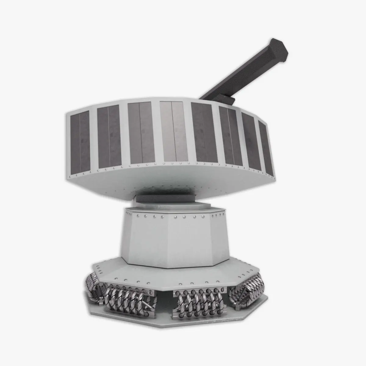 The model is divided in Base, turret, and gun for easy positioning. The pivots and hierarchy are setup correctly.