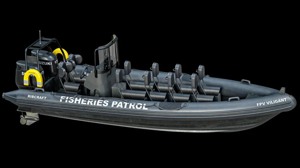 Super realistic high detailed RHIB Patrol Inflatable Boat Ribcraft 7 3D Model with high resolution textures and PBR maps.