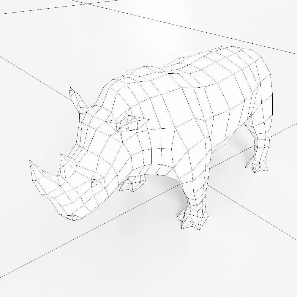 Rhino model is a lowpoly gameready 3d model. Model has no separate meshes. No texture.You can use obj and fbx format to import inside other programs like 3dsmax , Houdini , Blender, C4d , Unity 3d ,unreal and many more .