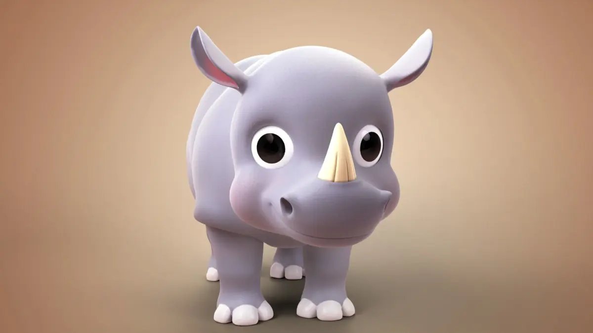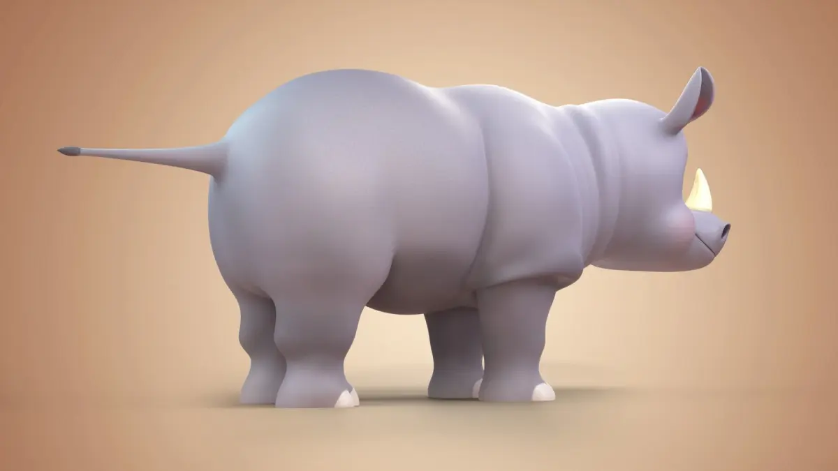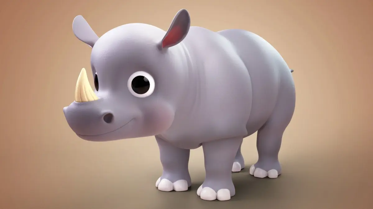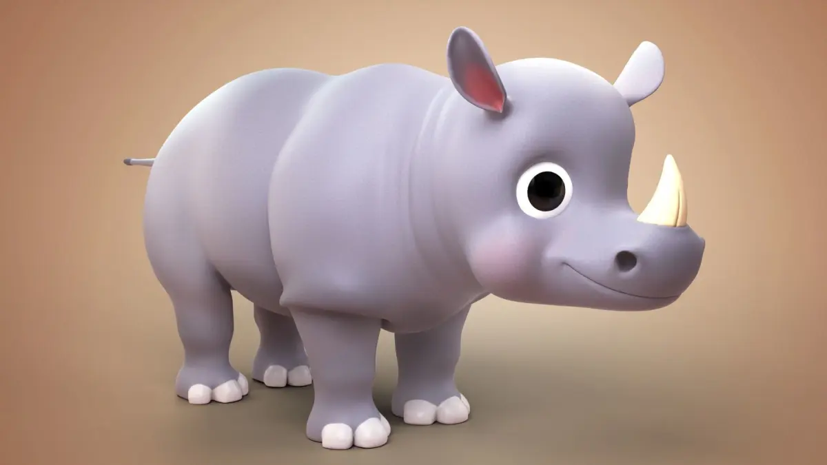 3D Cartoon Rhino Rigged Model.