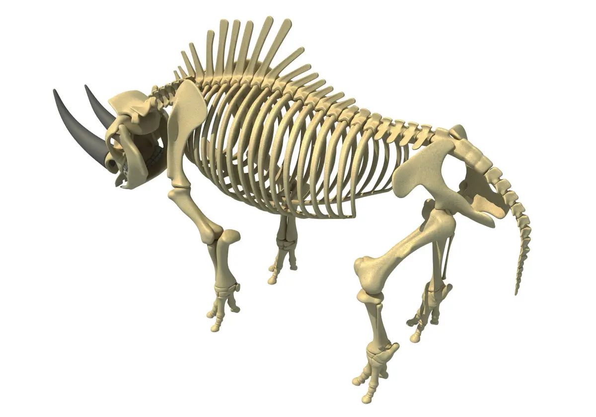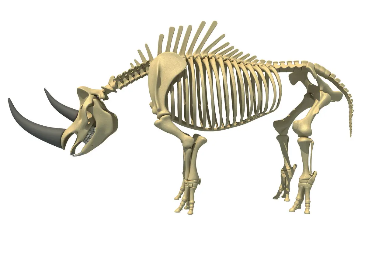 Top quality 3d model of rhino skeleton.Previews rendered with V-Ray.