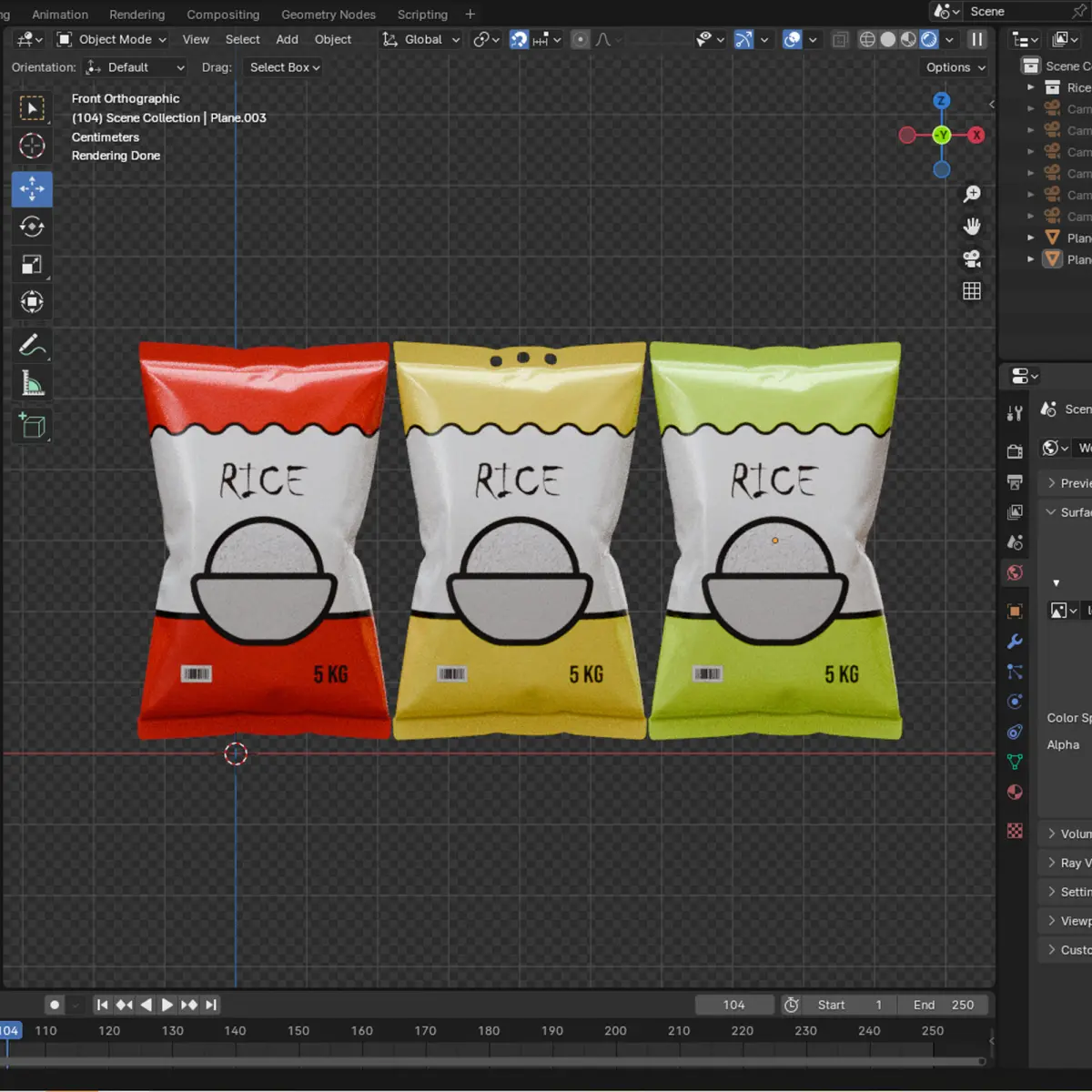 Rice packaging 3d design element. Easy to edit PSD textures. In 3 color variant. Suitable for rice retail theme