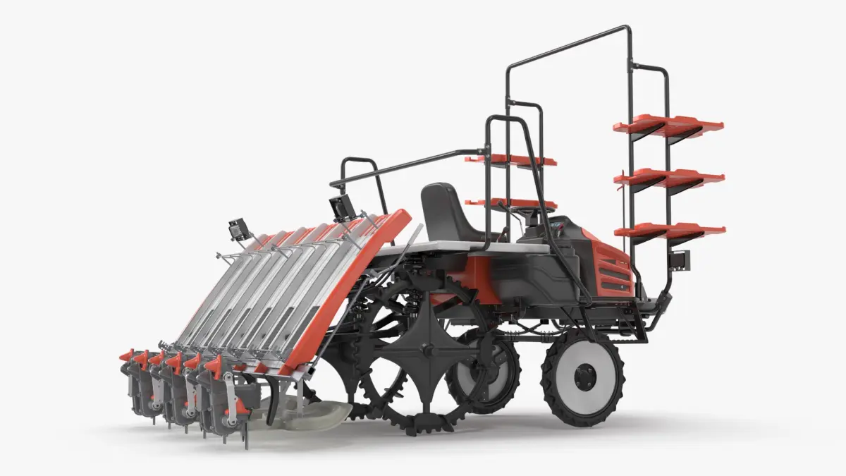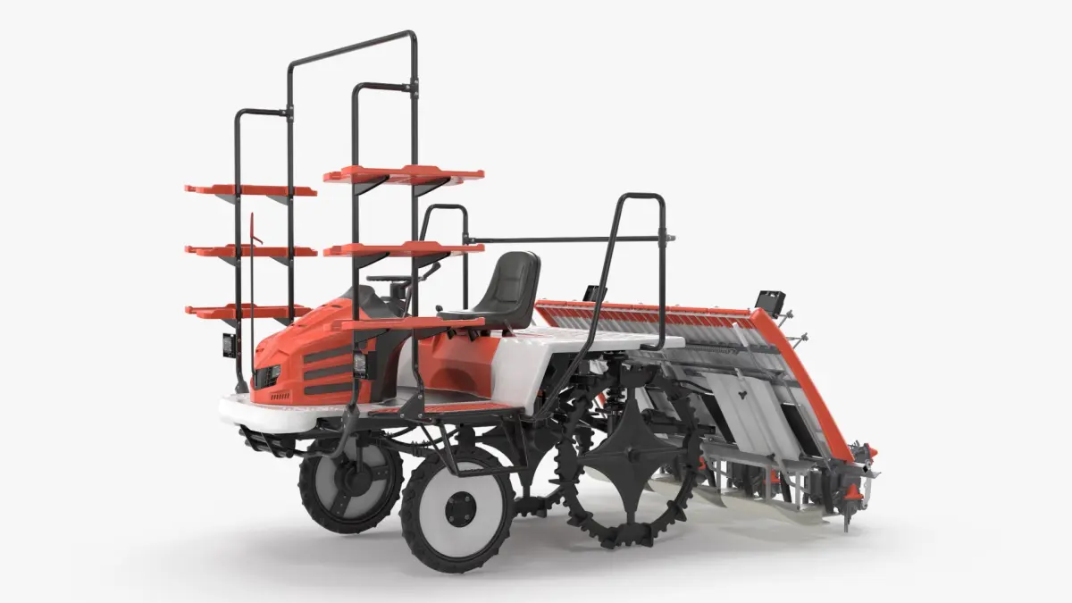 Rice Planting Machine In Operation Mode is a 3d model of a mechanized device designed for efficient and precise planting of crops, enhancing agricultural productivity.