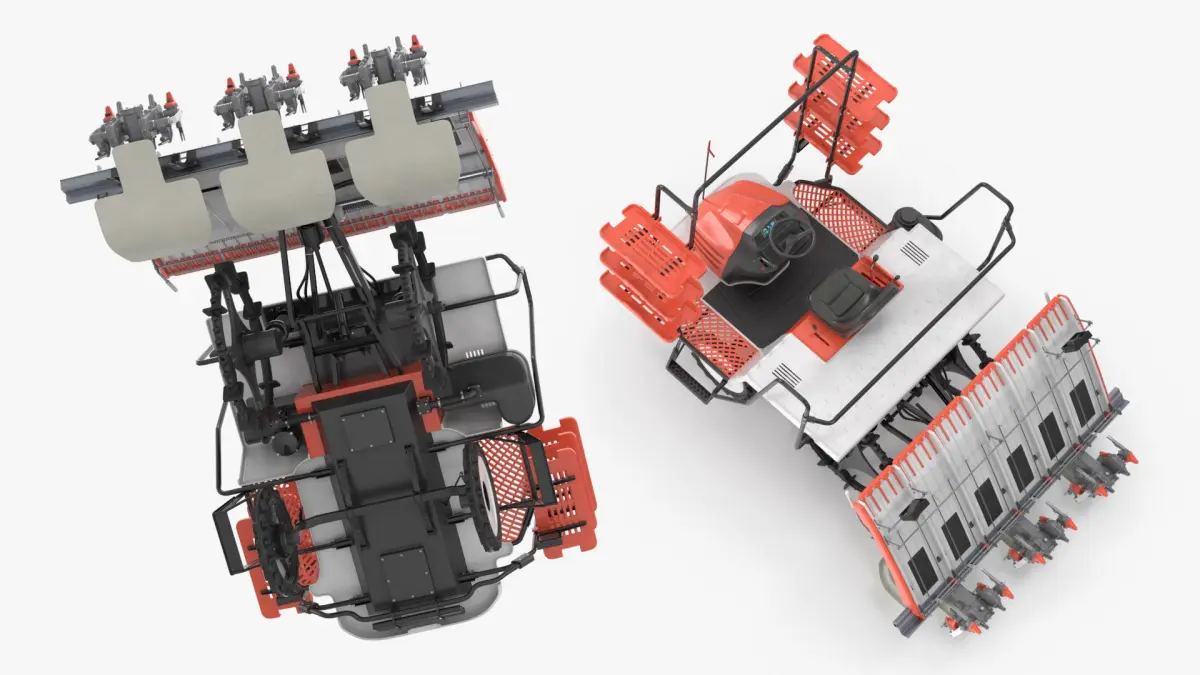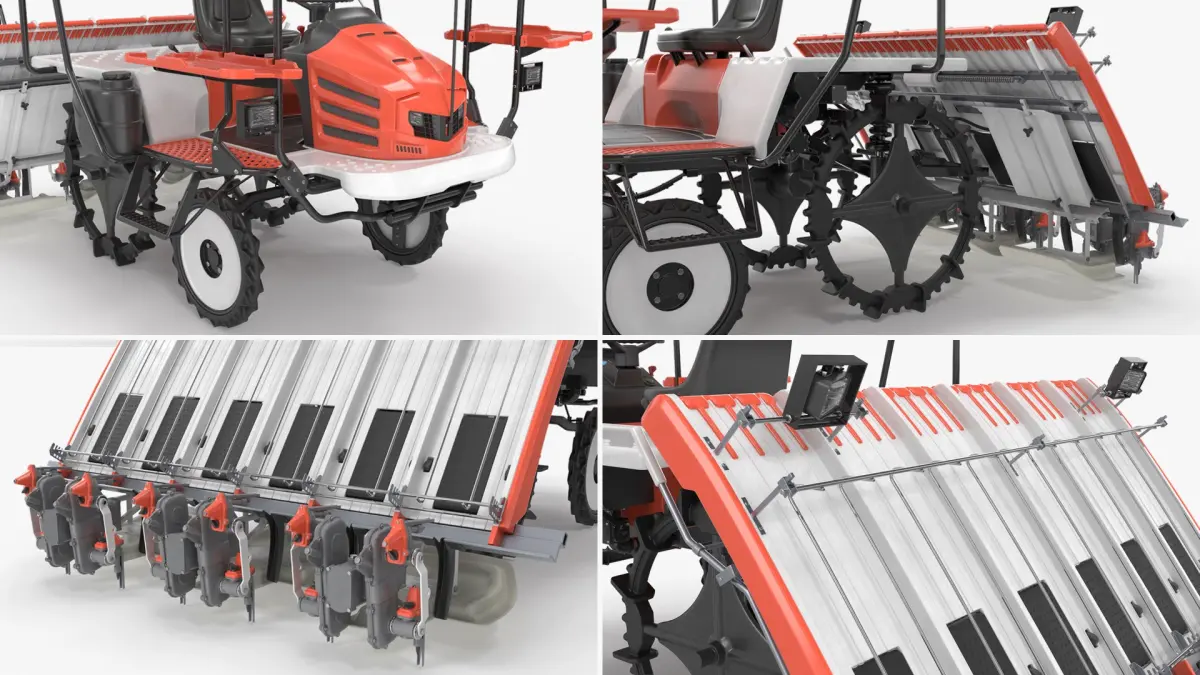 Rice Planting Machine In Operation Mode is a high quality, photo real 3d model that will enhance detail and realism to any of your rendering projects. The model has a fully textured, detailed design that allows for close-up renders, and was originally modeled in 3ds Max 2020 and rendered with V-Ray. Renders have no postprocessing!