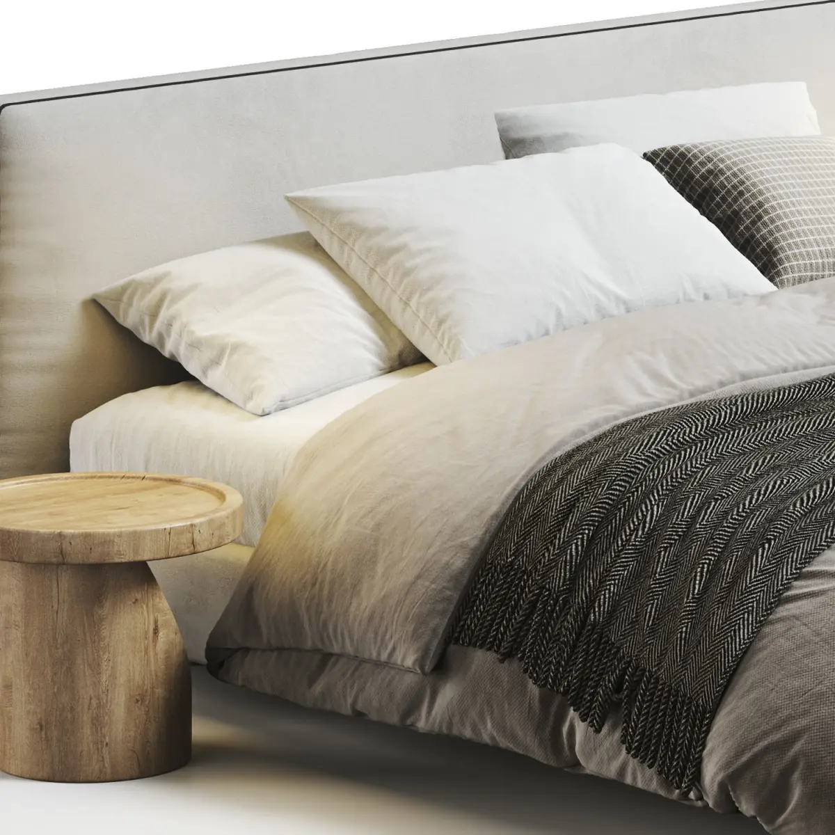 double, bed, linen, velvet, ney, small, coffee, table, pillow, plaid, blanket, scandinavian, room, bedroom, sheet, headboard, night, sleep, bedding, modern, coverlet, wrap, nightstand, bedside, closet