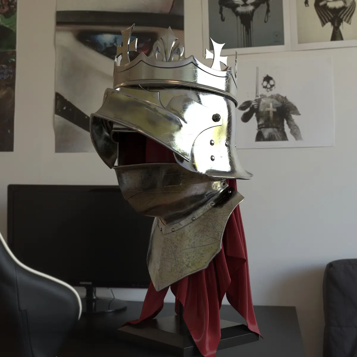 Capture medieval history with this detailed 3D printable helmet featuring the crown of Richard III.
