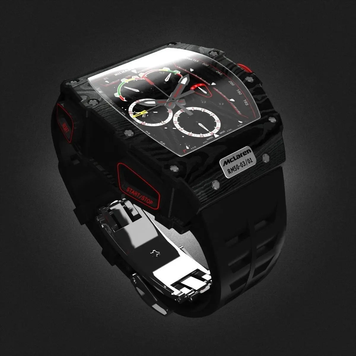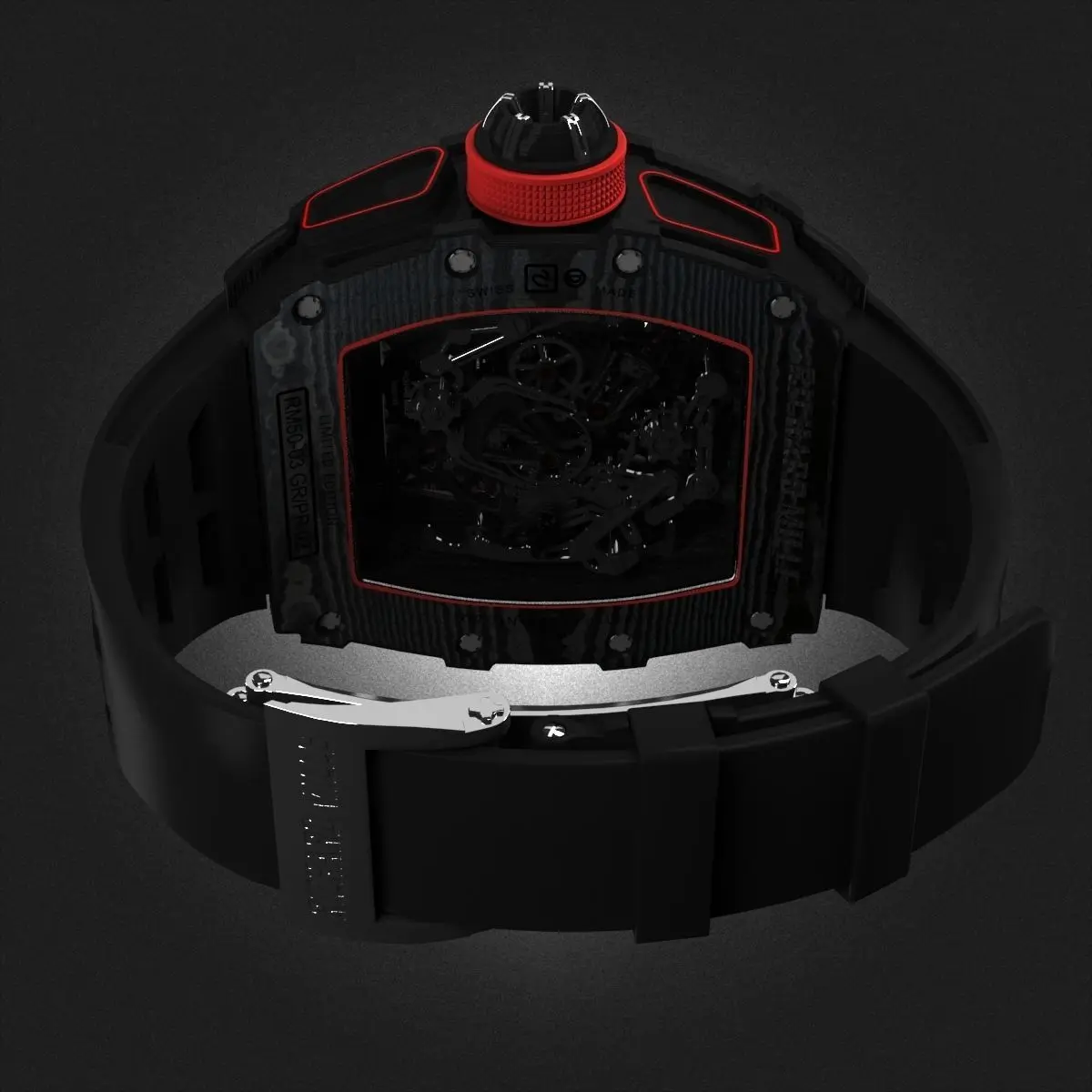 3D model of Richard Mille RM 50-03 watch with black strap.