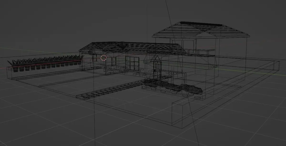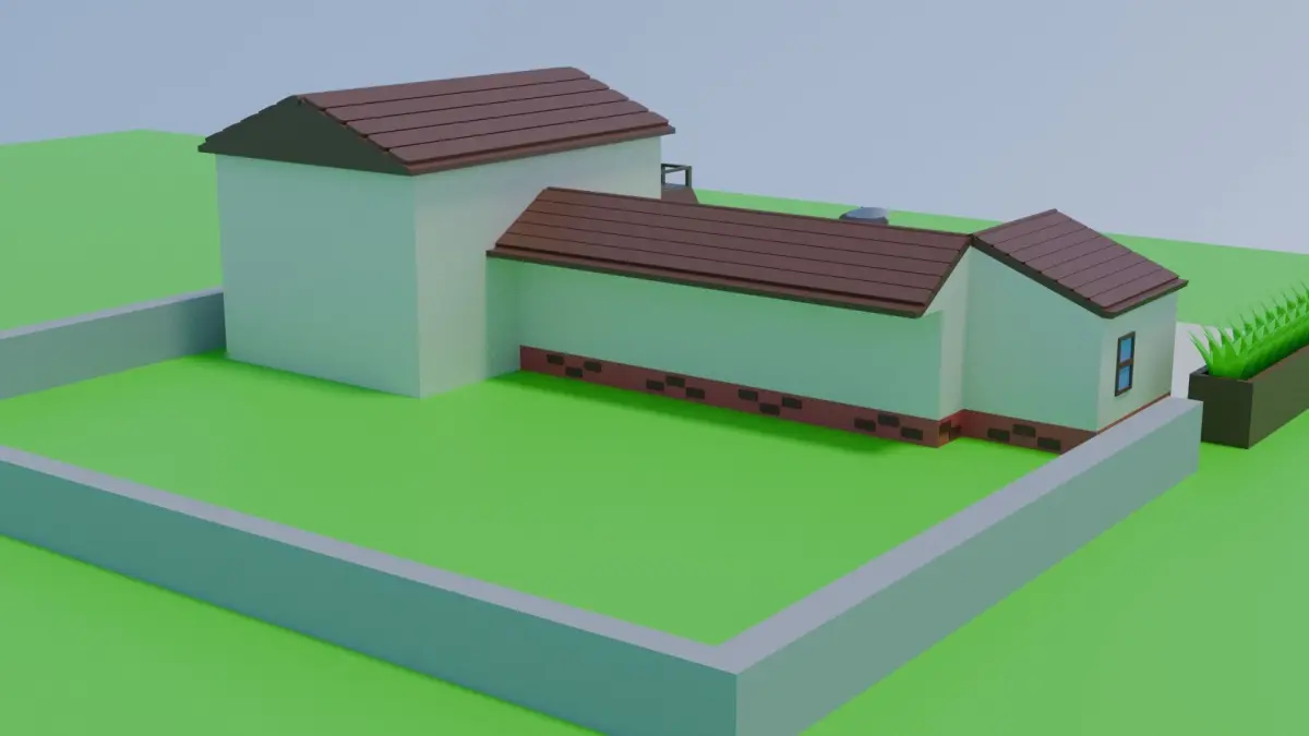 Low-poly house, light and cameras included. FBX, OBJ, STL. Includes: house (three parts), field, flower beds, bushes, satellite, low-poly basket, additional lighting and cameras, materials and textures. Wireframe and different angles included.