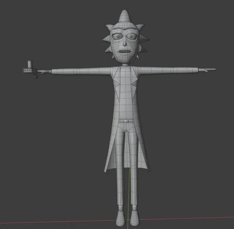 Rick is based on one of my favorite characters, from one of my favorite animated series. Rick has been optimized to keep the mesh light, but enough density remains to support details. In addition to the main character, Rick comes with his signature portal ray in high detail, adding to the overall polycount. Rick is approximately 8836 polygons, while his ray is 6678 polygons. The model has had its UVs flattened and unwrapped for texturing. A copy of the character has been included with a basic joint structure and weights. It is unclear how they will translate to different software, but weights can be redone as needed.