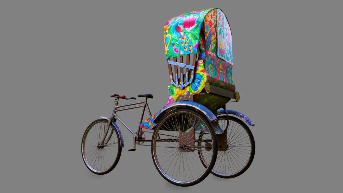 This is created following the model of Bangladeshi Rikshaw.You can use this model to rig by yourself or use it as a static prop for your game or movie.All Texture size: 2048x2048 (2K)Renderer: V-RayHDRI included (Relocate on dome light)You might have to relocate the textures to V-ray materialor just extract the texture folder in the following directionD:\Personal_Projects\Rickshaw
