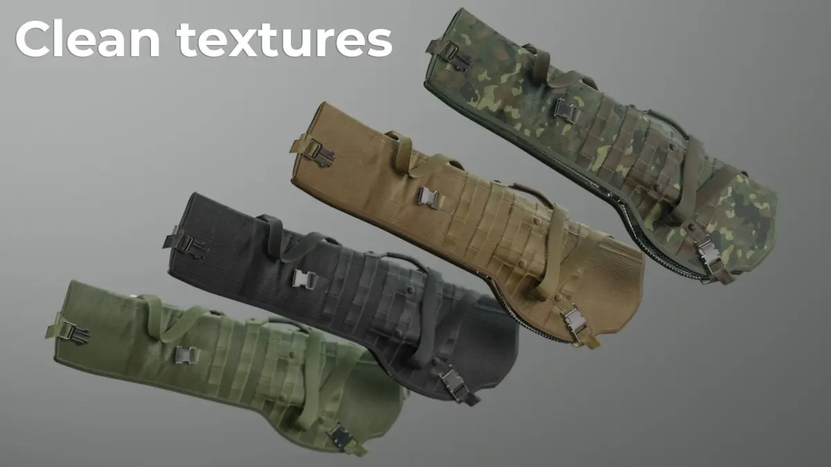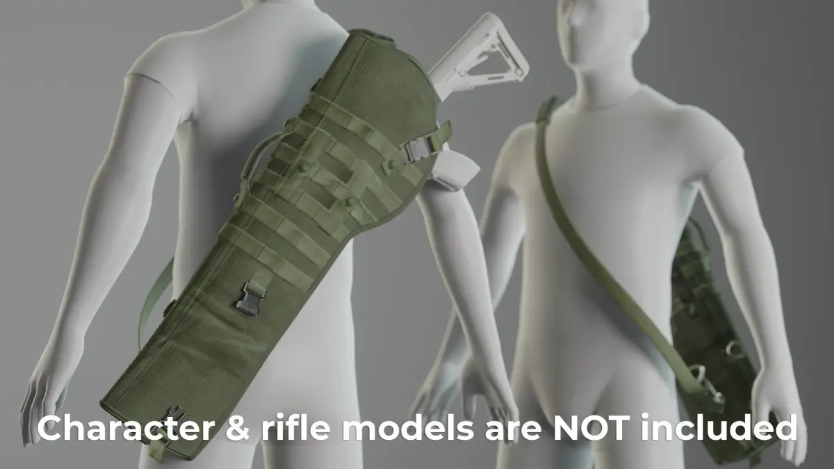 A game ready rifle scabbard for PBR engines or renderers. Modeled in Blender 3.0. Includes two belt options - when the bag is put on and taken off. Character and rifle models on render are NOT included, they are just for show.