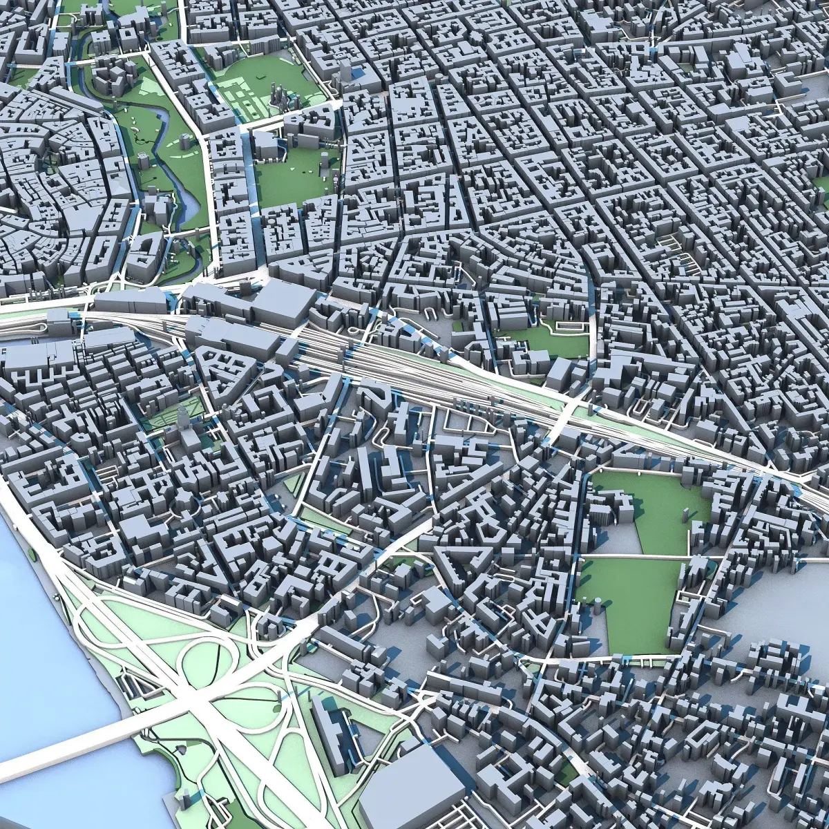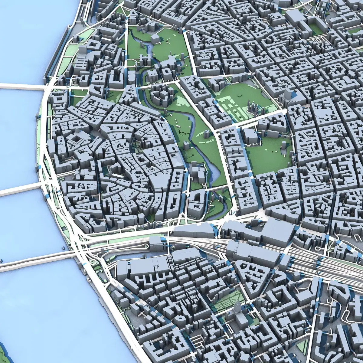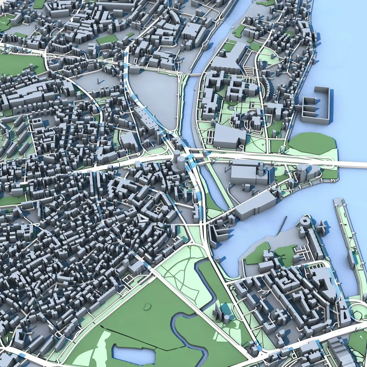 The .ZIP folder contains separate .STL files – buildings, water, vegetation, base etc.