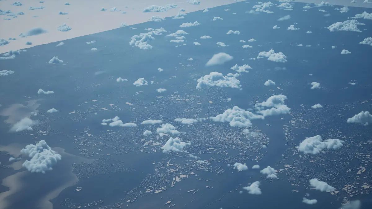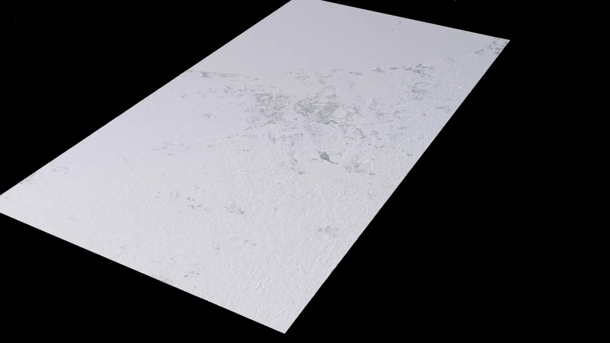 Originally created in Houdini 19. Final images rendered in Houdini. Data source is ASTER GDEM V3, ASTER WATER V1, Open Streep Maps 2022, Copernicus Sentinel 2016.