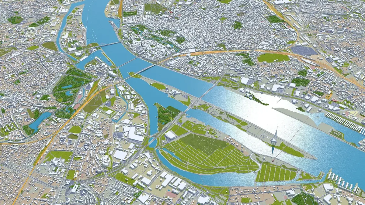 Accurate 3D city model and its surrounding area based on GIS data