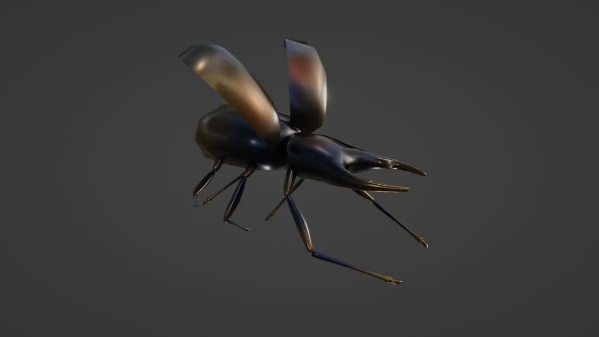 Black beetle, nature inspires me, I like insects so that's what I'll be doing, there are a lot of bugs to do. I used Blender 100% for everything, model, textures, rig, animation.