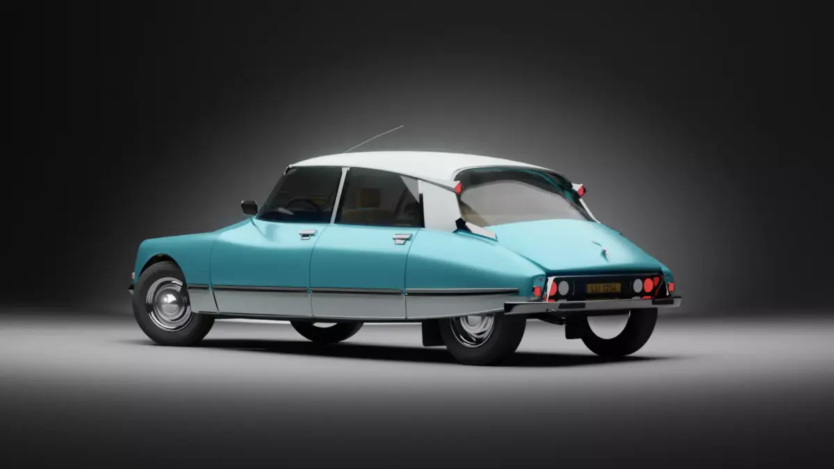 The car was modeled in Blender 3.6.4. The car model has 31 objects, 312,532 vertices, and 309,488 faces. Most materials and textures are made procedural in Blender, with external images are packed into blend file.