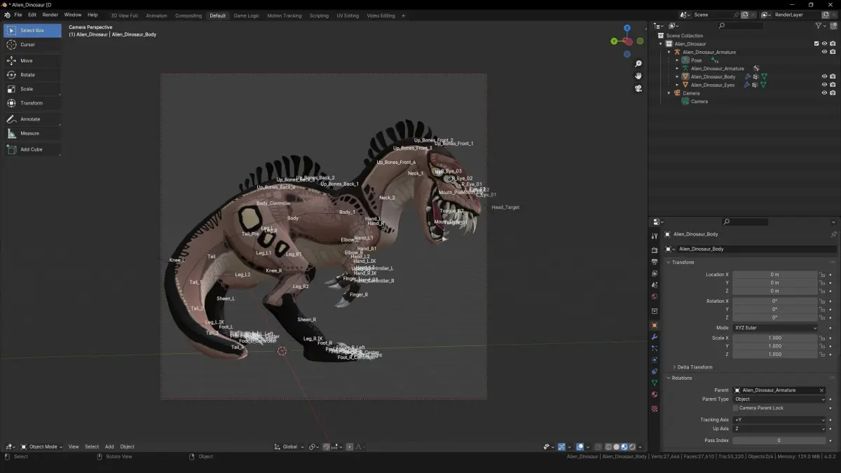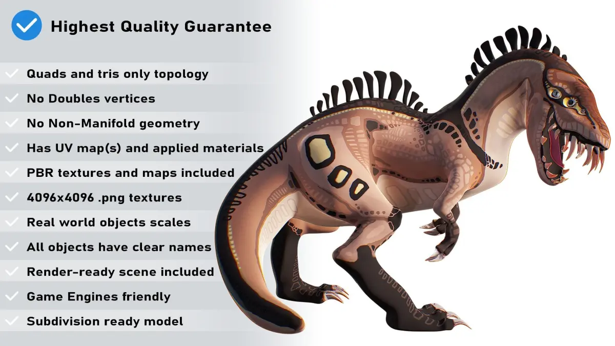 High quality low poly game and render ready model of the Cartoon Alien Dinosaur (T-Rex). This is Rigged edition of the model. This character has high quality armature with IK and Controllers. Dinosaur is fully rigged. The simple version is also available at CGtrader marketplace.The model was created with the highest quality standard: