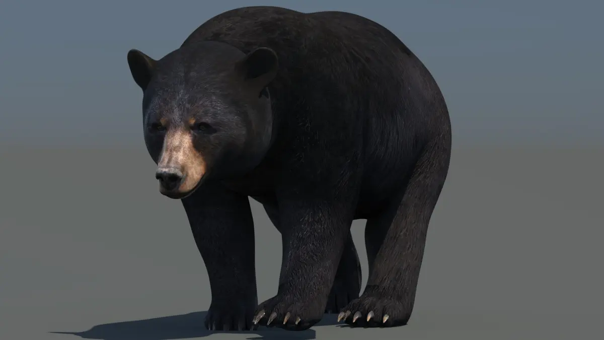 - Black Bear 3D Model — Rigged and animated with CAT system. Includes walk, run, and climbing cycles, plus adjustable layers for mouth, eyes, and teeth. Comes with detailed textures up to 8K resolution and clean UV layout.