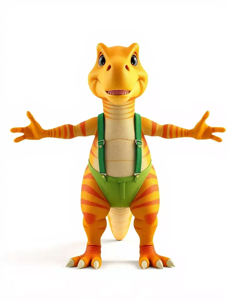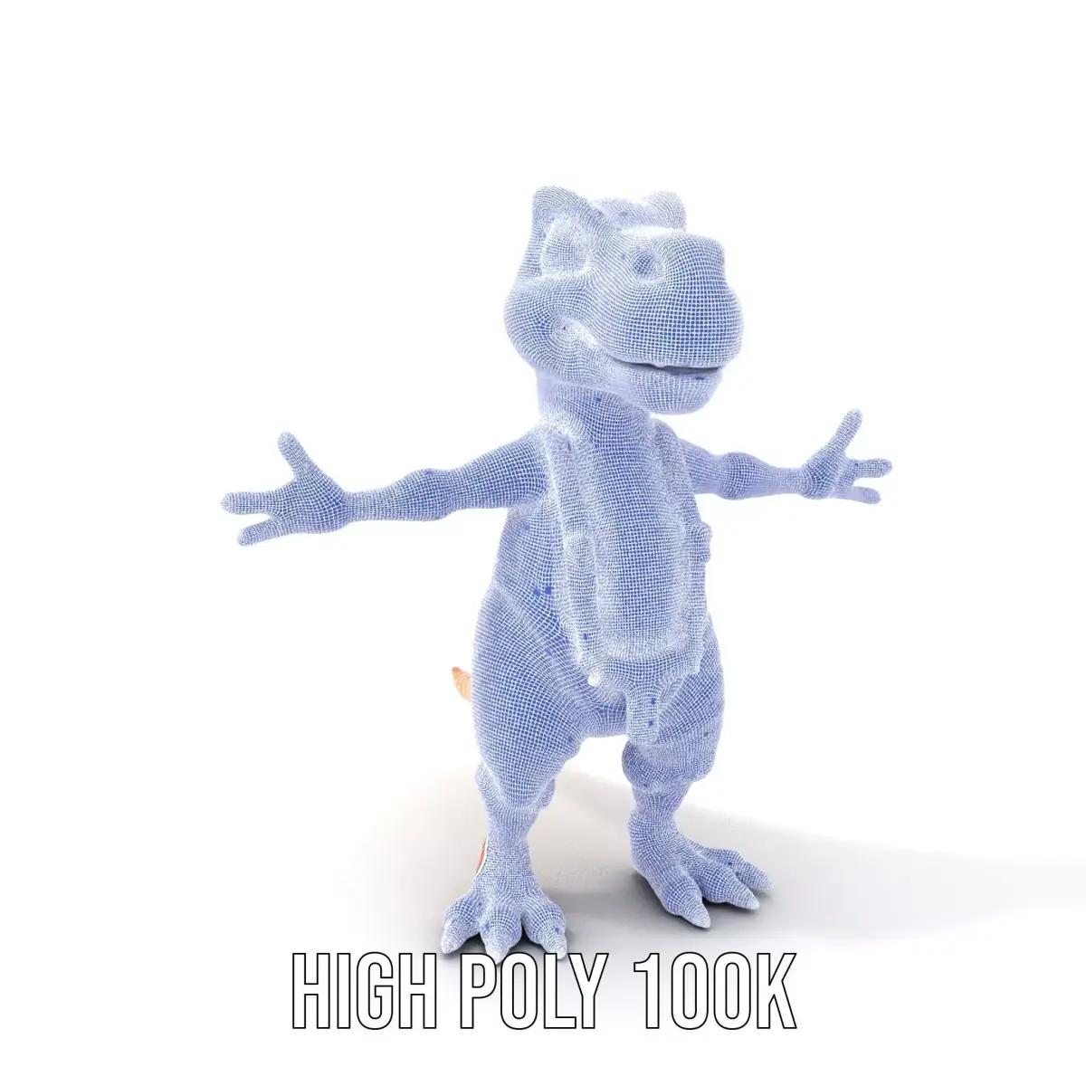 Home Catalog Rigged and Animated Striped Dinosaur Character with Green Ove... Low-poly 3D model