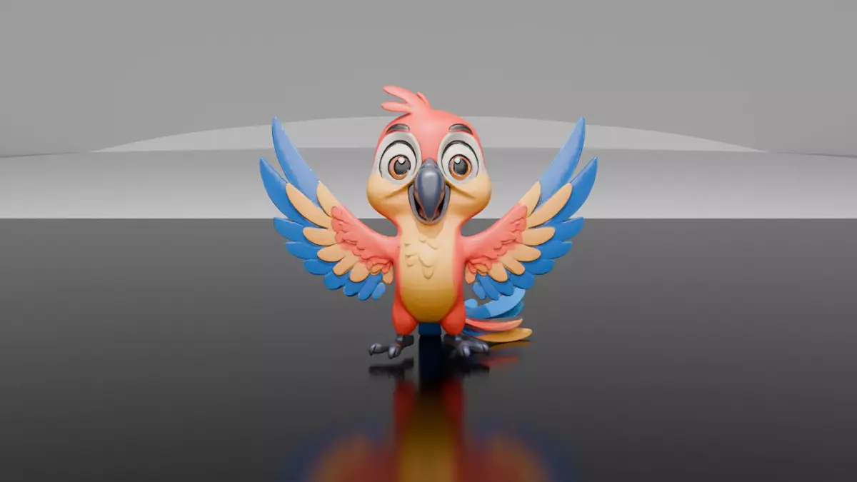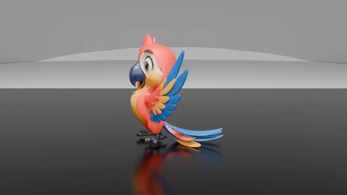 High-Quality Stylized Cartoon Parrot 3D Model – Fully Rigged and Game-Ready