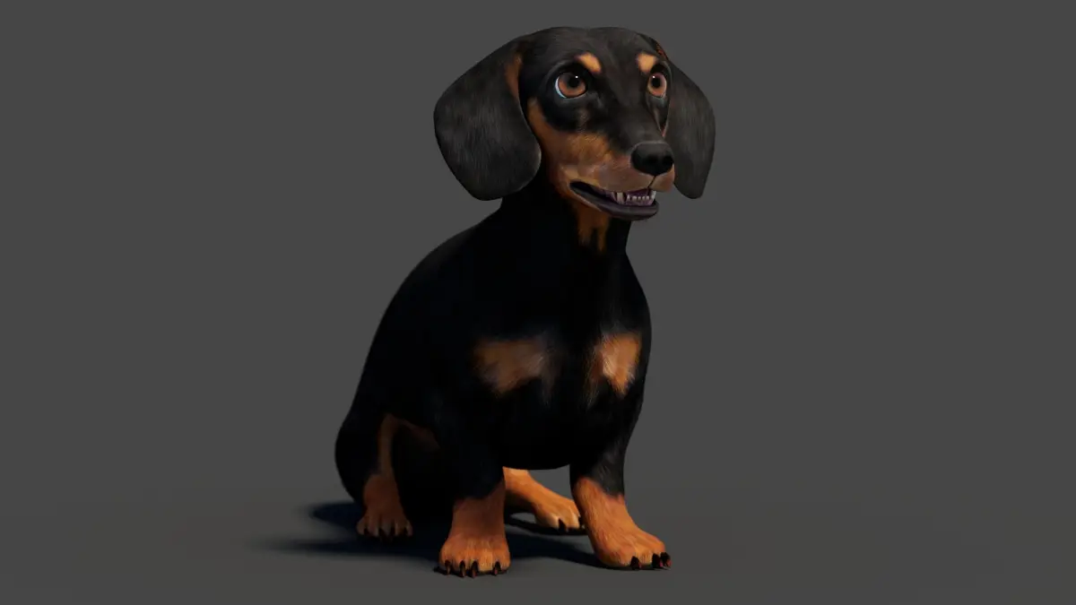 Rigged Dachshund Dog 3D Model – Game-Ready (Black, Simplified Fur)