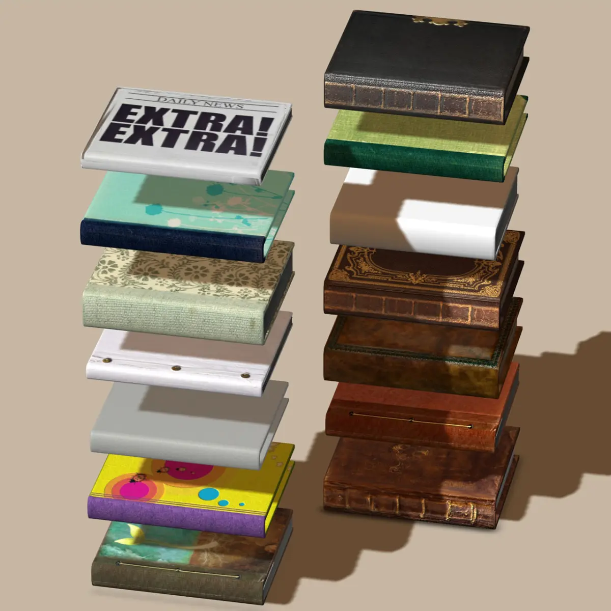 14x Rigged and Textured high quality poly model books.