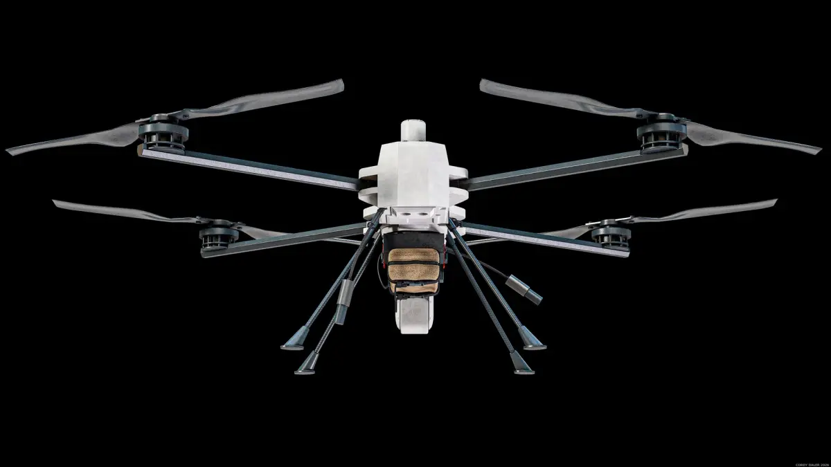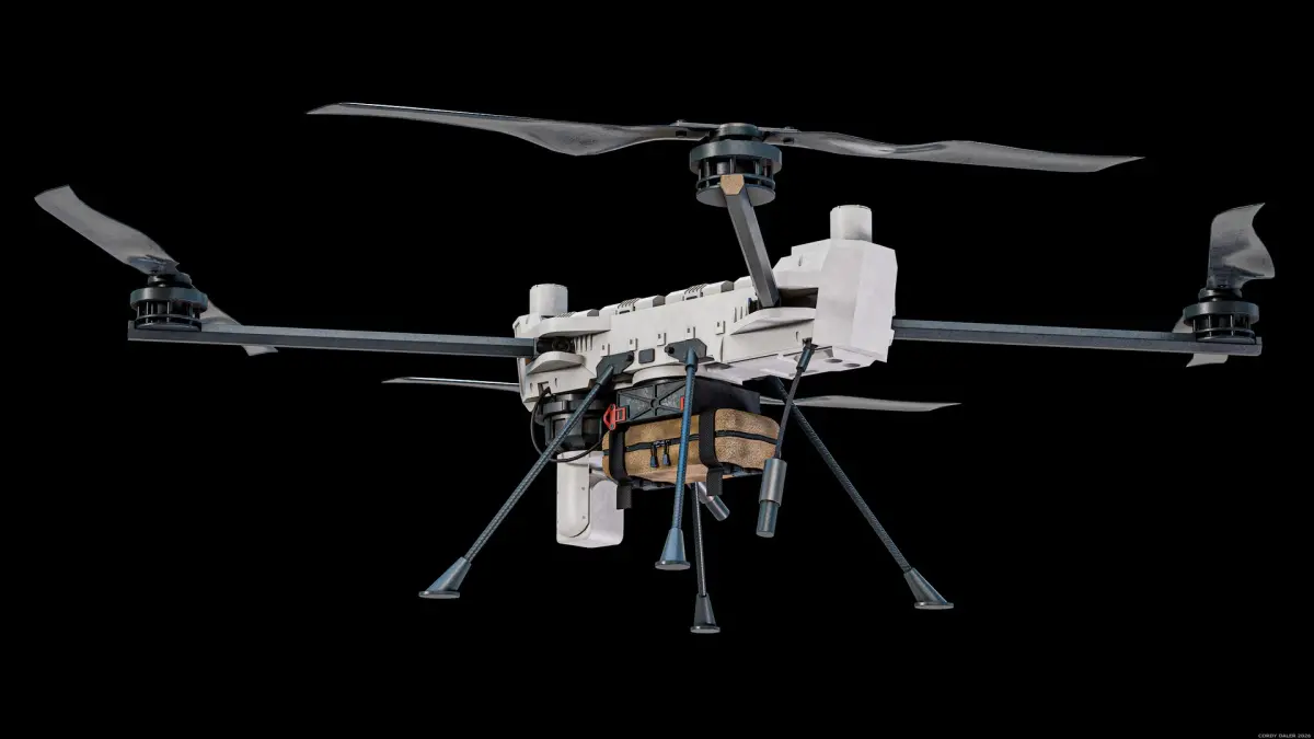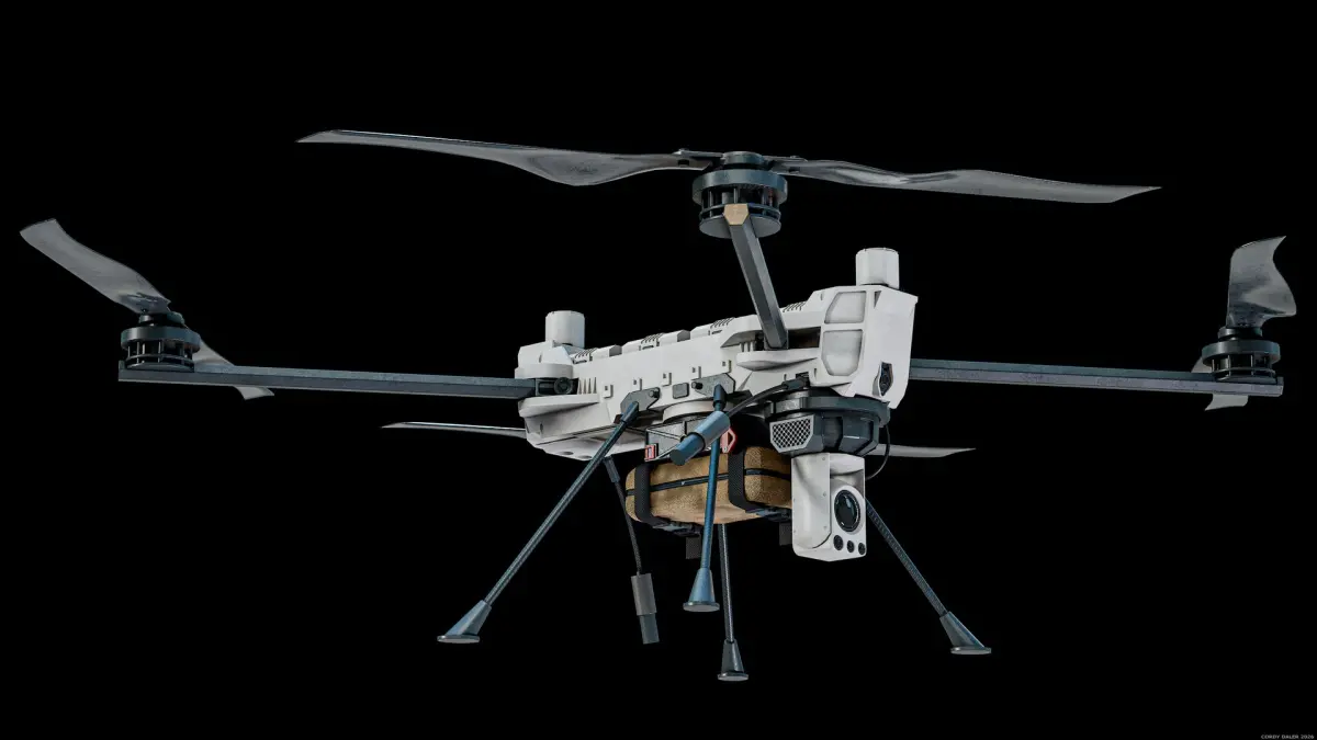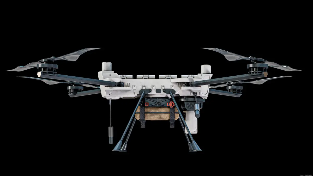 Super realistic high detailed RIGGED PDW C100 Defense Heavy-Lift Military Quadcopter PBR System 3D Model with high resolution textures and PBR maps.