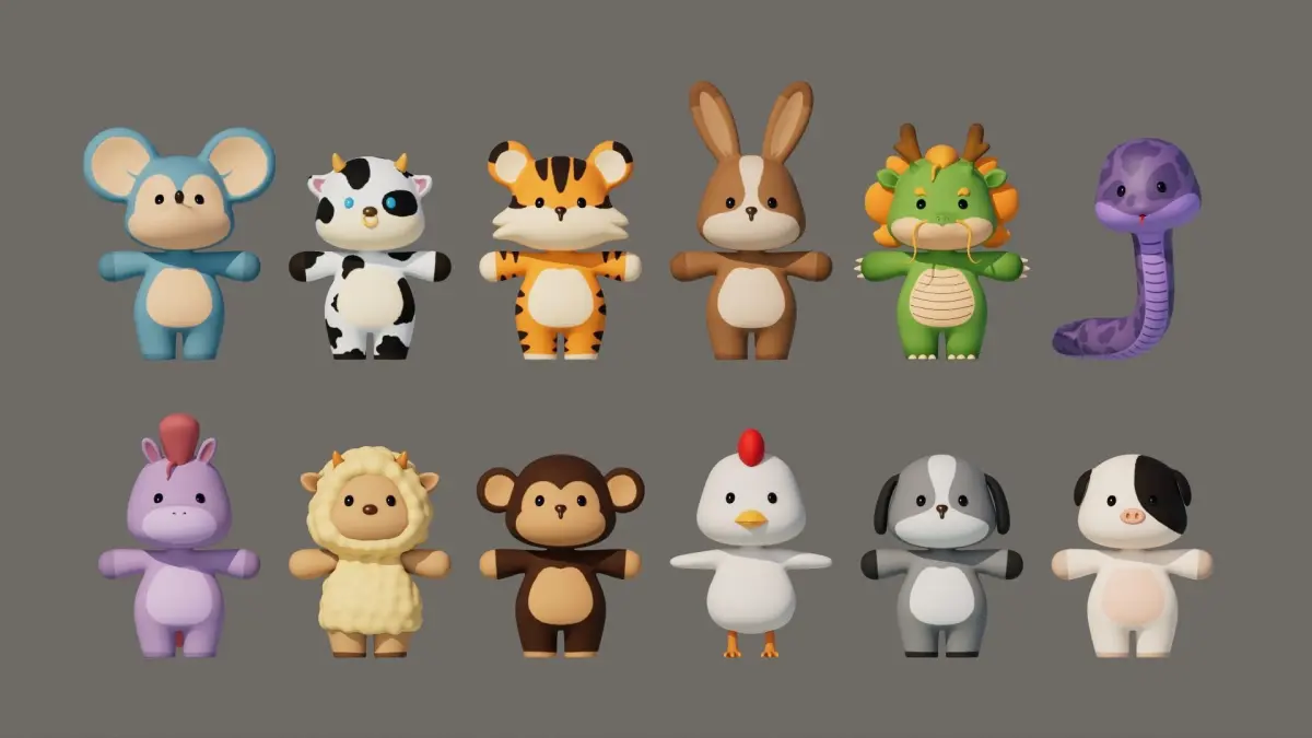 Rigged Cartoon Animals Collection Pack-001 Low-poly 3D model