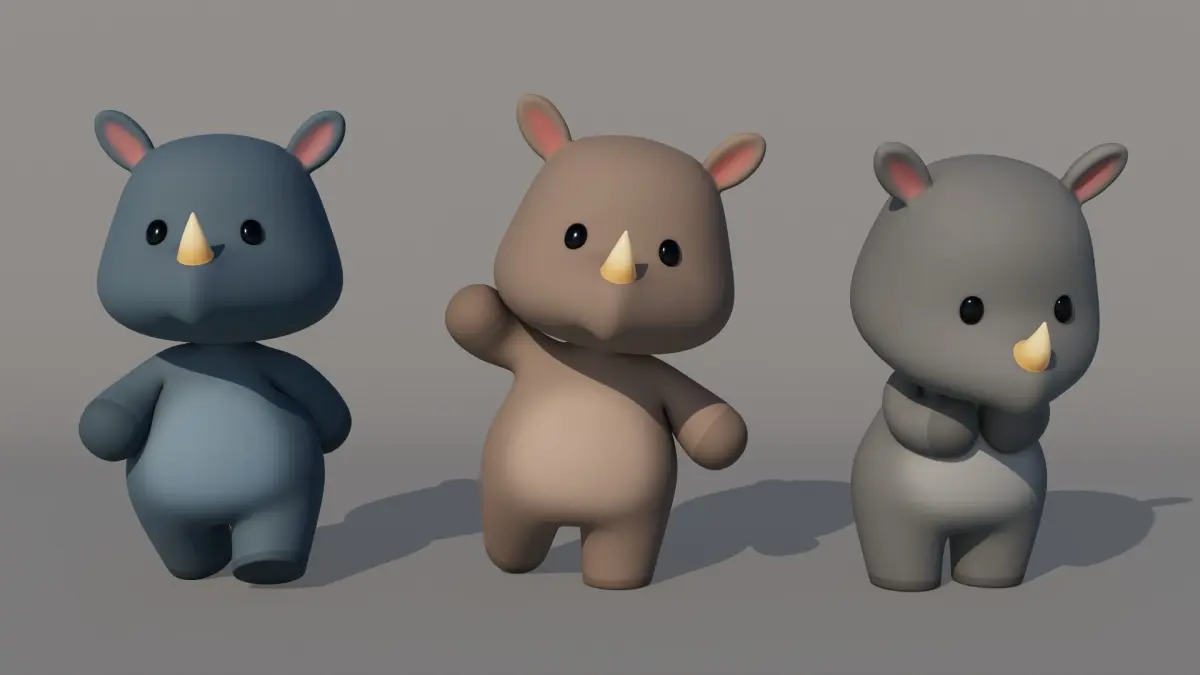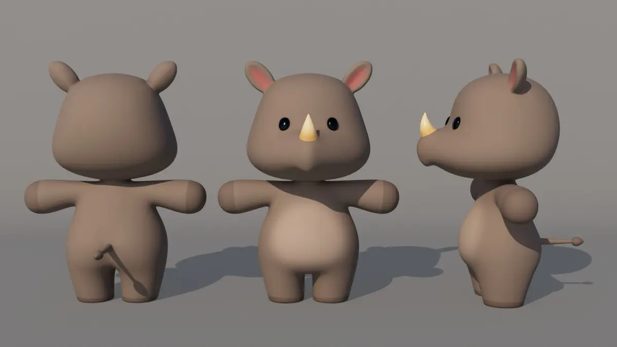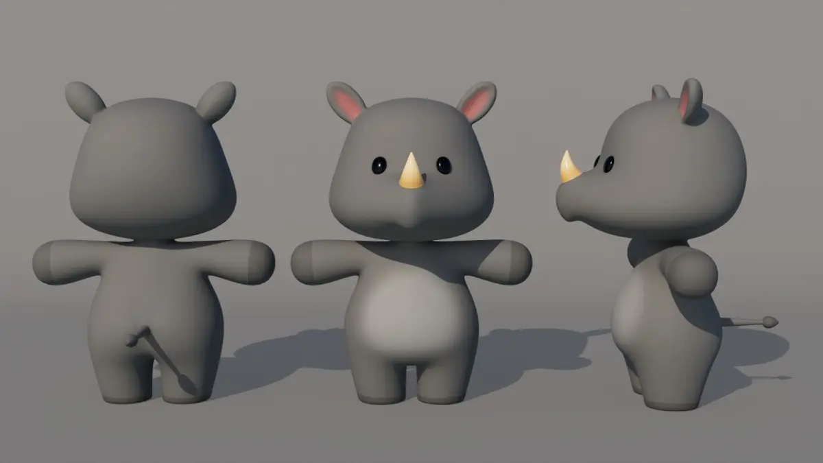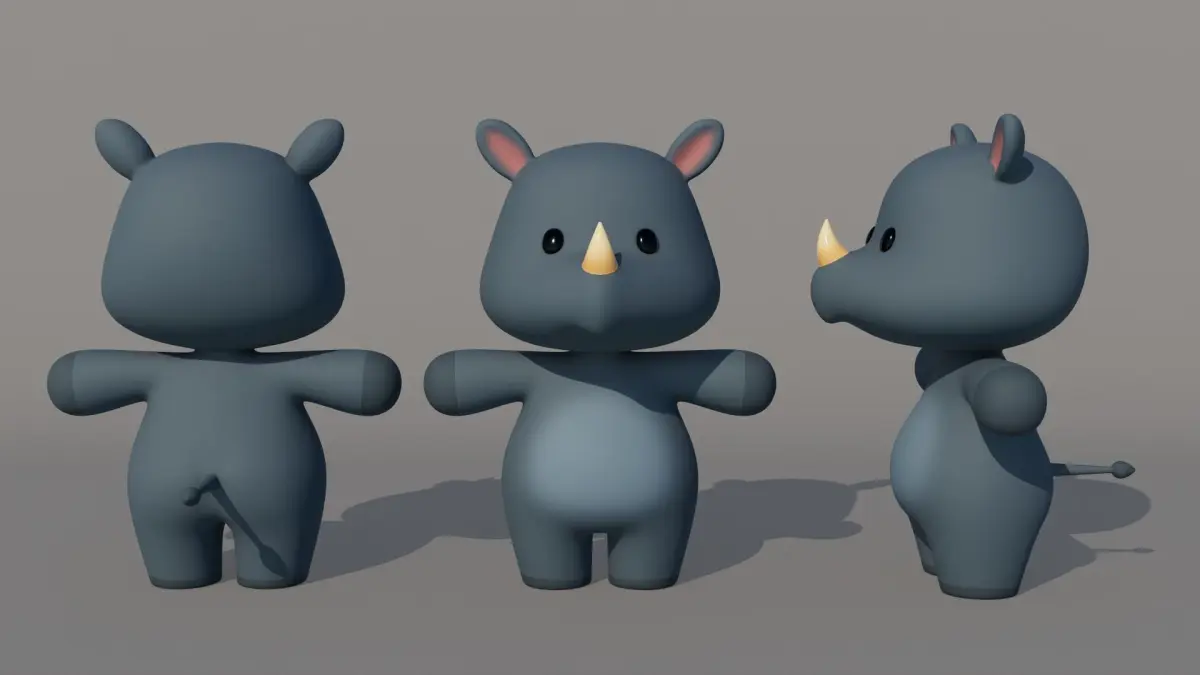 Rigged Cartoon Rhinoceros Low-poly 3D model