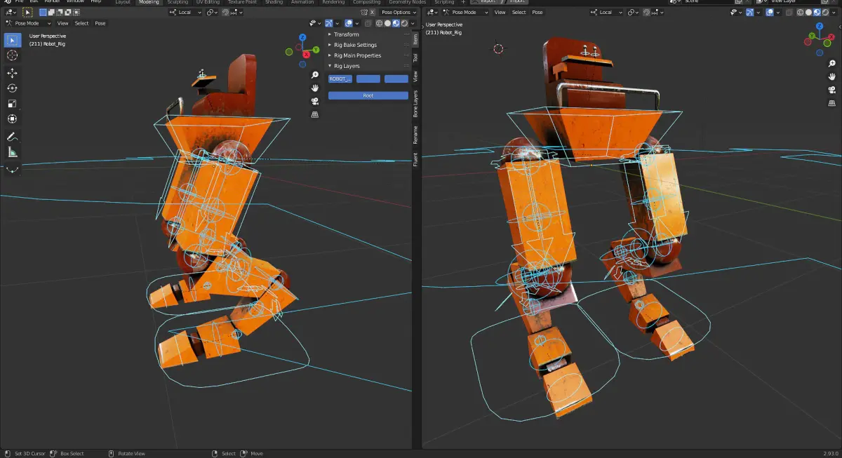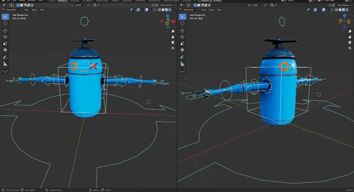 A Rigged Control Robot with the body, arm, blades, and a robot contains torso and leg parts. The control robot will control the 2nd robot.
