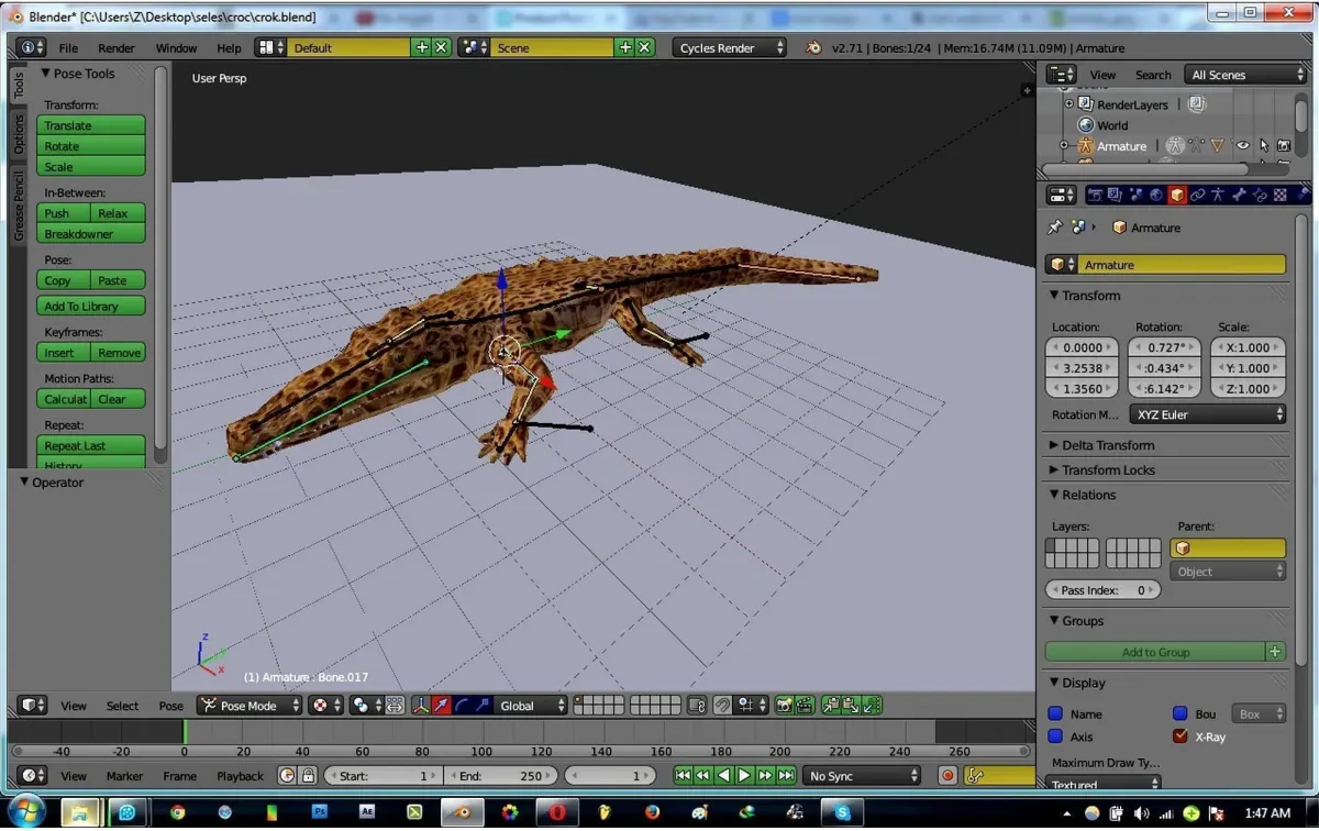 Rigged Crocodile with a simple texture 3D model