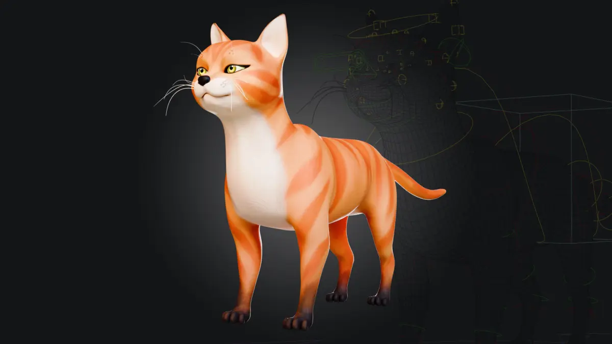 A cute 3D cat model that I've been working on! This little feline is meticulously crafted with quad-based topology, ensuring smooth and clean deformations, perfect for animations and games.