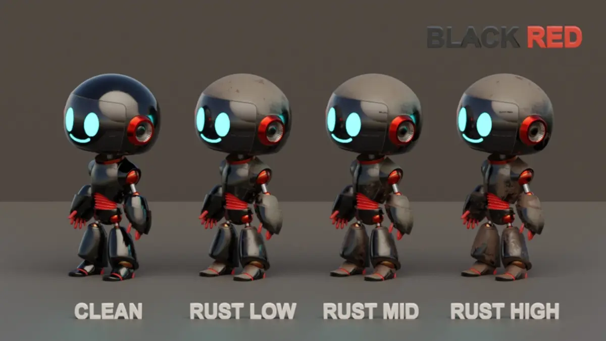 Each Set including 4 different Texture Sets: Clean, Rust Low, Rust Mid, Rust High