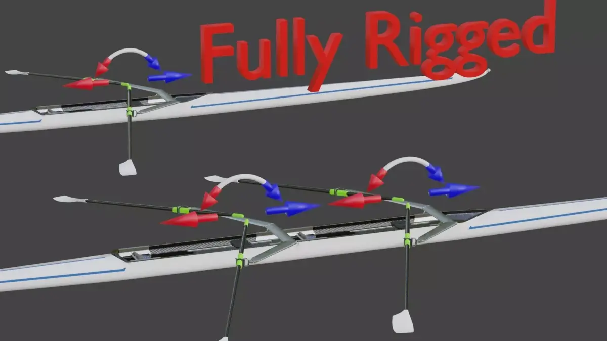 The oars are animated using the objects HANDLE, you can move and rotate this objects to move the oars or you can parent them to the character hands, the model is rigged to follow the meccanical principle of the gate of the rowlock.
