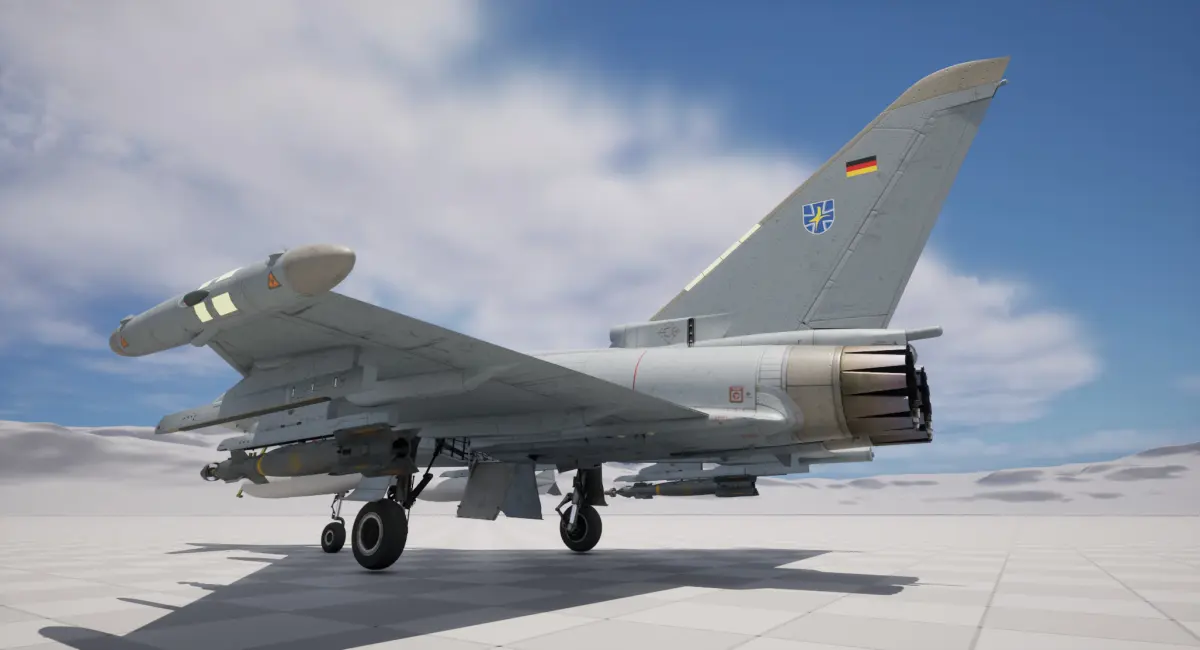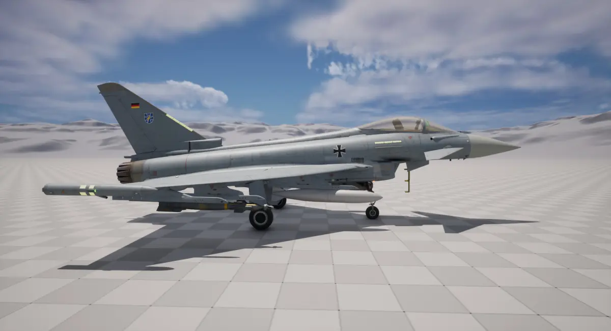 Rigged and animated Eurofighter Typhoon Fighter Jet with cockpit is created in 3Ds Max 2022, rendered in Unreal Engine 5.1.1.
