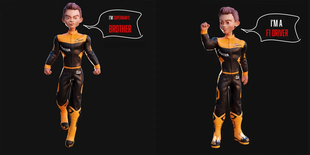 A Rigged Character with full-body, clothes, shoes, mouth, teeth, tongue